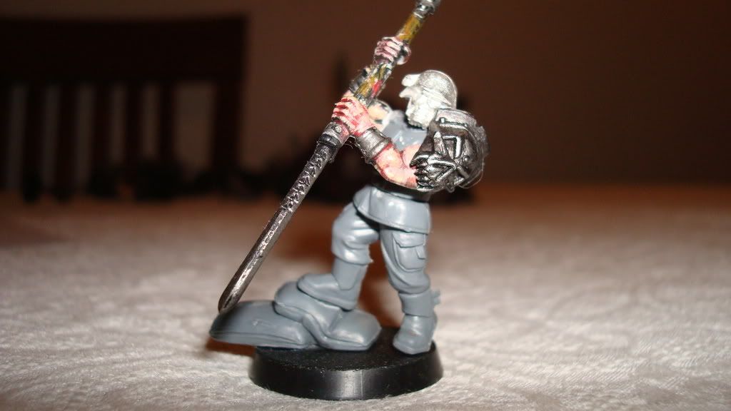 The trooper with the halberd type thing is really cool. The missile launcher is a neat idea, but I also think it should angle up a litle.