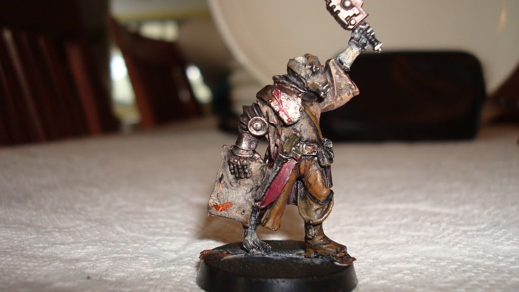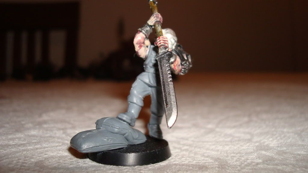 Okay, it's a GW chainsword with a Pig Iron rebel head. What's the body from? Is that a Bretonnian pilgrim?