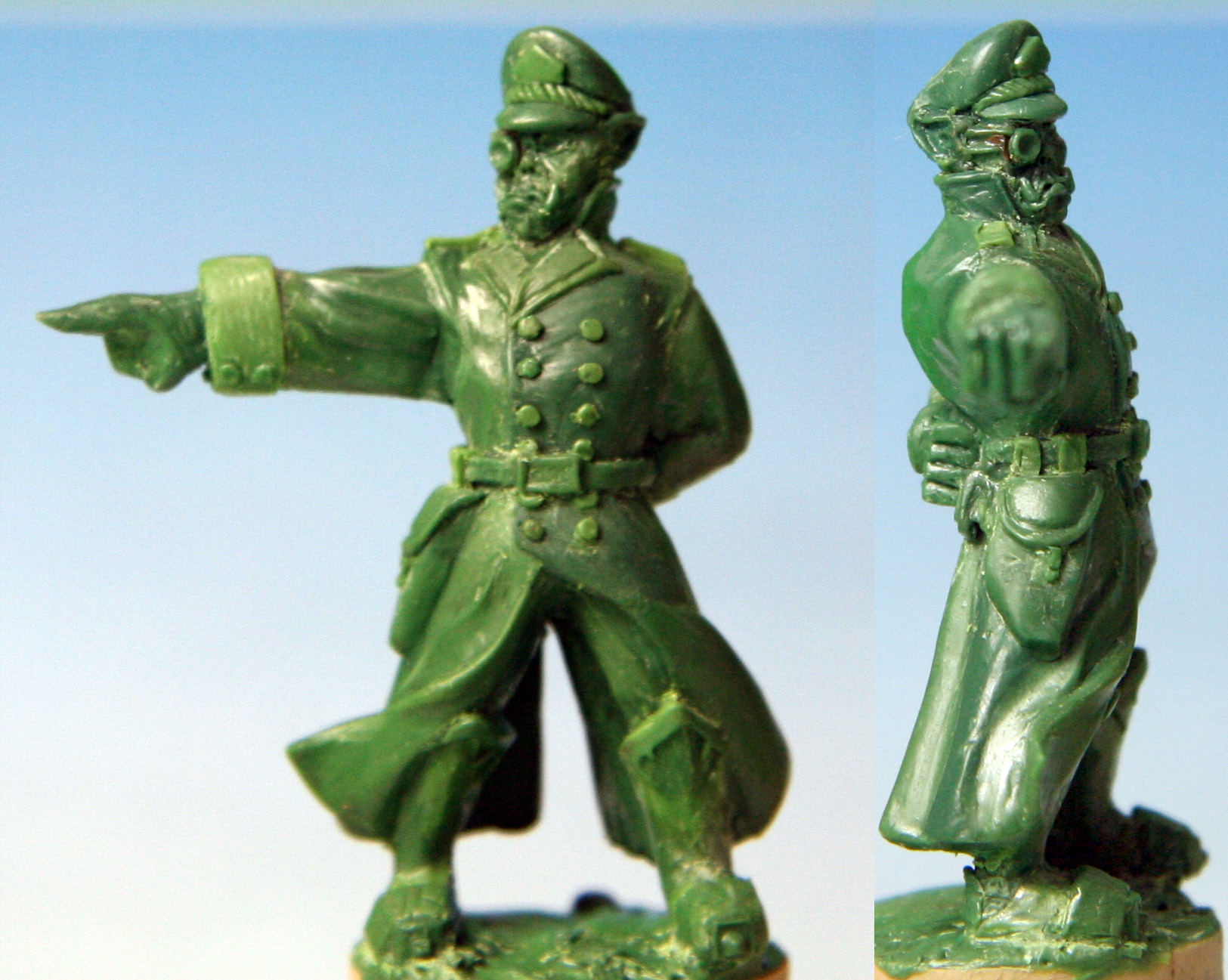 Thanks for the props, Grizgrin. I am going to redo the mold, and when I do, I'll make a few changes to the master. (I noticed one of the buttons was smaller than the others, fill in between the coat and the backside of the legs for easier demolding, etc.) This won't be until probably later this fall, as I'm about to move apartments and then my wife and I are going on a trip for a while, so probably round about September/October I'll be doing some more molding.