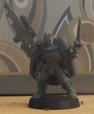 The knife sucks and will be replaced - I didn't even pin it. I was just wanting to bodge something on there for the shot - I was just messing around with converting a power sword to a Tanith straight silver knife to see what I could do. I did poorly. Does anyone have any ideas on what I can use for the Tanith knives? All the IG and Marine plastics are single-edged knives, while the Tanith use more of a dagger-style double-edged knife.