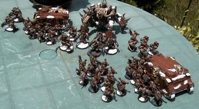 The army was painted by an local guy who is starting up his own little painting service. It's got a heavy amount of Green Stuff work here as well as snow basing. Here are the pics: