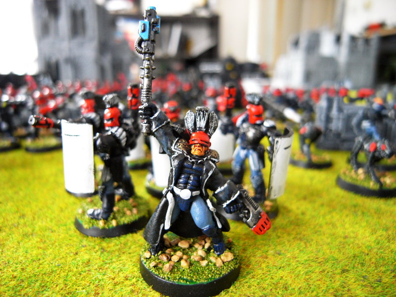 * Commanders are Arbites Generals (military/ops commanders) or Judges (preacher-style lawgiver characters). I guess the General model could always be a veteran sgt. and the Judge could be the only commander if need be.
