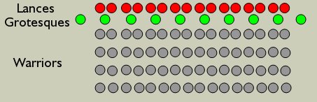 Moz wrote:Screening rules being as screwy as they are, the lances could all be up front, a row of grotesques behind them, and then the huge mob of ablative warrior wounds behind that. Lances cover the grotesques, grotesques cover the lance squad.
