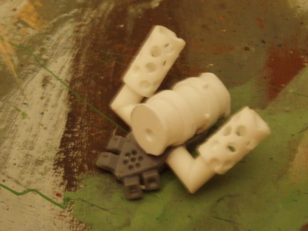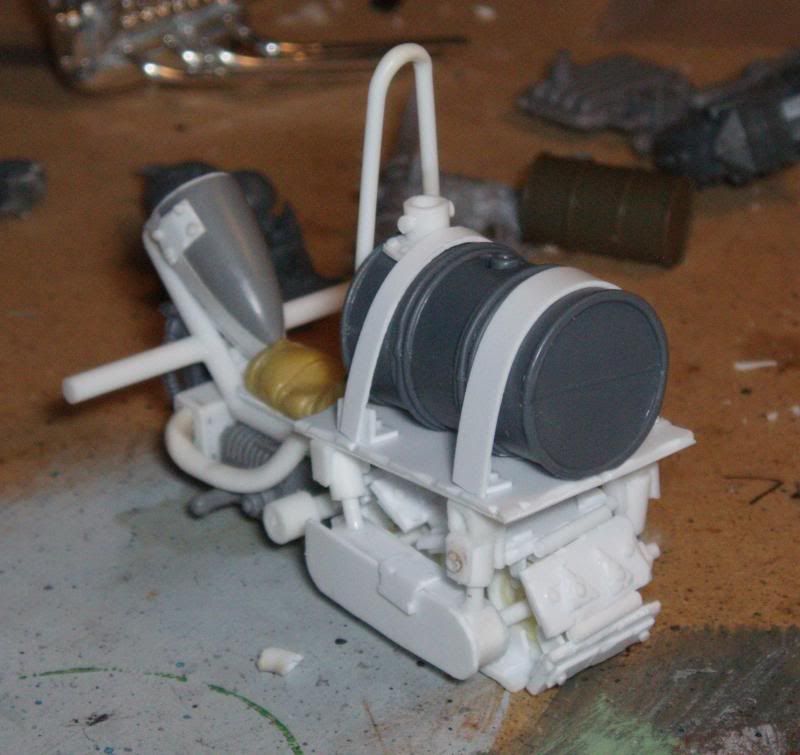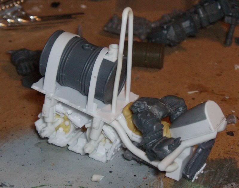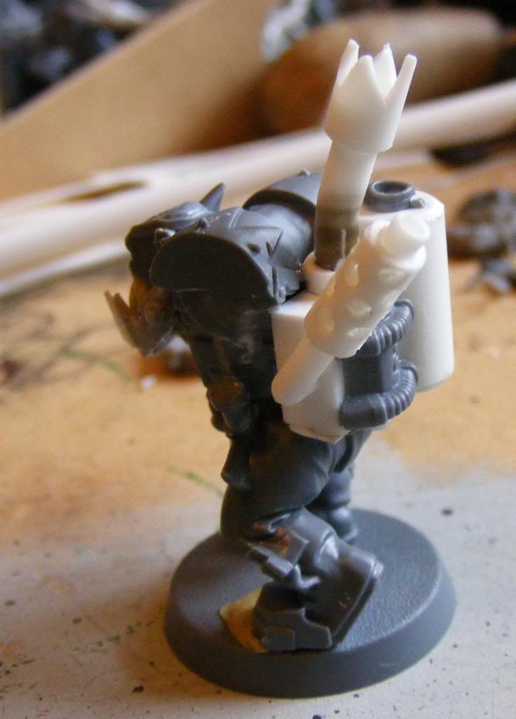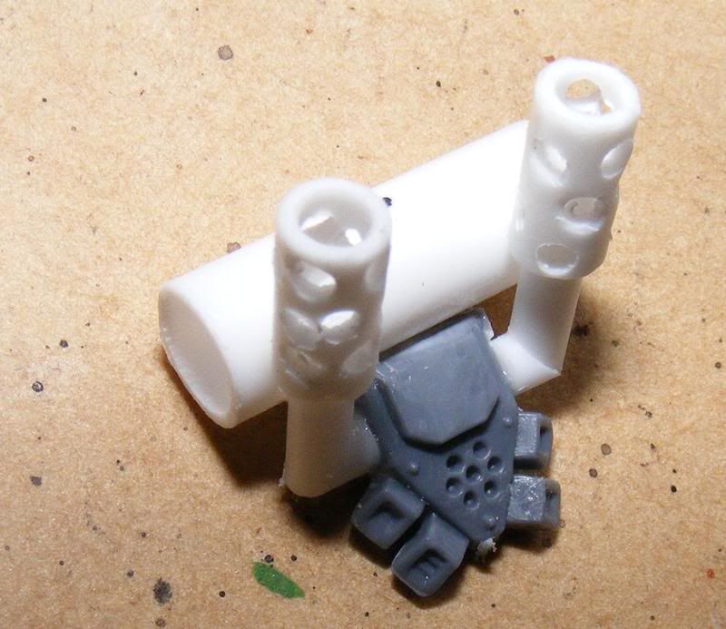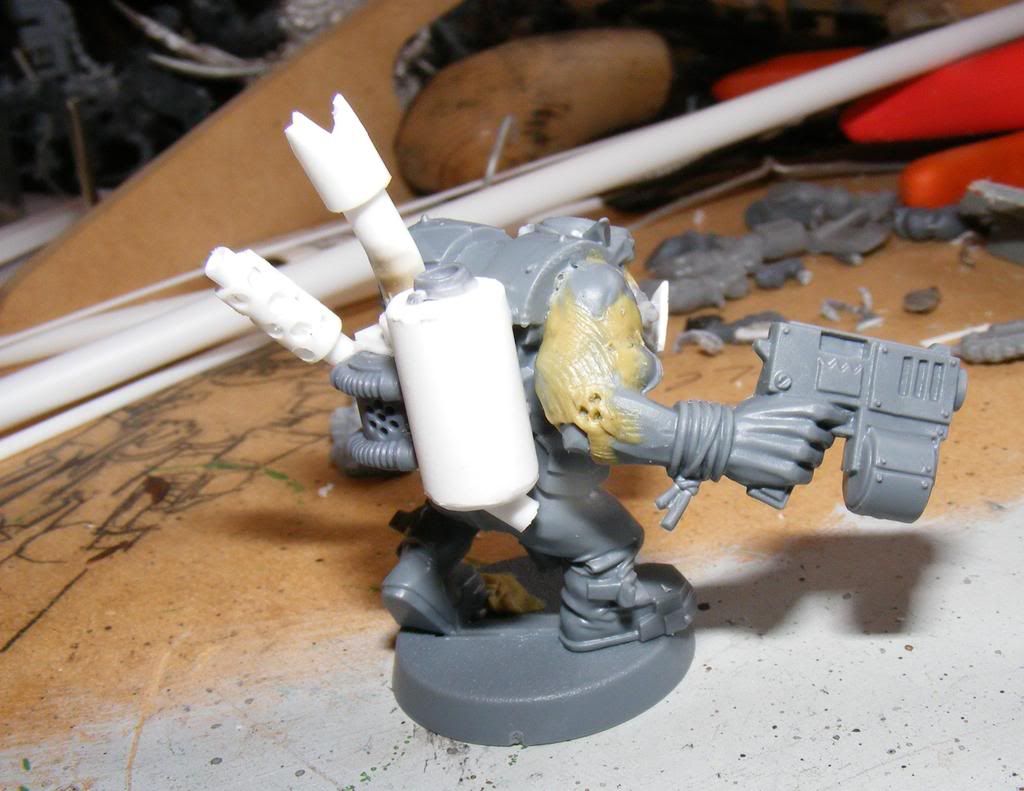 Unfortunatly I was a bit lazy in making the stacks and used the next size up so they are a bit bigger and stick out more than i would have liked. Not sold on the virtical canister yet, but I do like it. I will play more with the angle of the next one a bit and see what happens. Might try a special weapon next, I think the virtical canister idea with a smaller Flamer propelant tank would look pretty cool next to it.