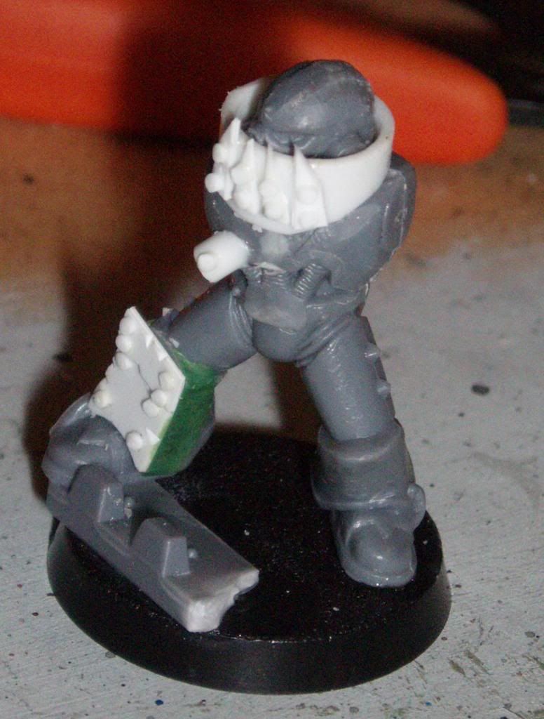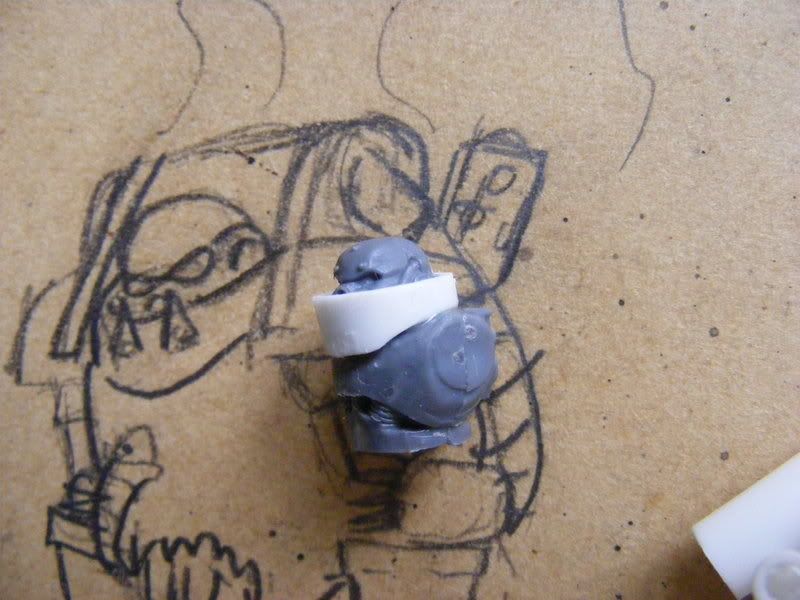 Found a hooded head in my Dark Angel bits, I'll put some holes in the hood but I think this would work. Right now he is dry-fit to the head and some legs that will belong to somebody else. What do you think so far?