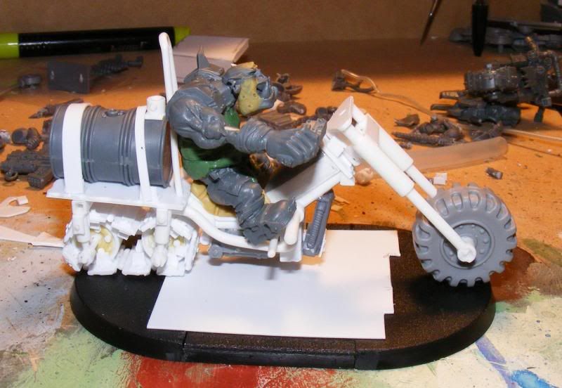 So far the legs are just sitting on the bike, I'm not too sure if I wanna chop up an Ogre or putty up a new body for the boss. Either way I am luvin the plastic warboss legs and it pains me that I am giving kudos to the Assault on Black Reach minis in any way.