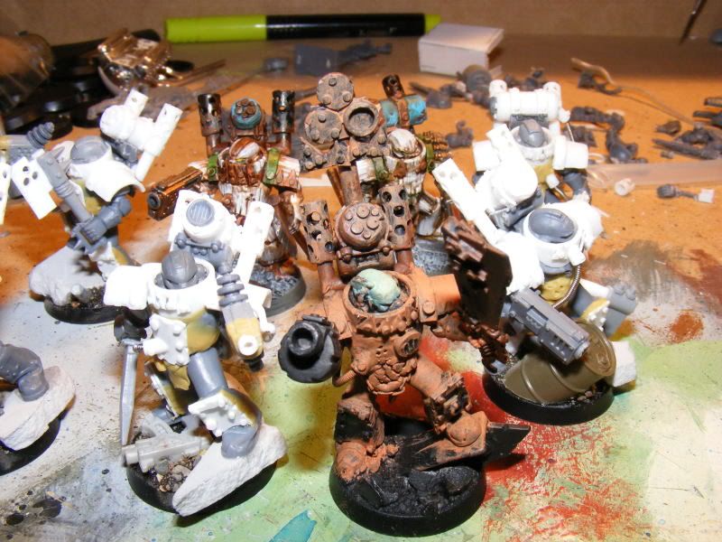 Had a pretty good weekend with lots of scraping, cutting, gluing and epoxy, got everything up to at least WSIWYG standard and played a game against my buddy's Dark Angels. We pulled a draw but just barely, he was one model away from being tabled and I got too confident.