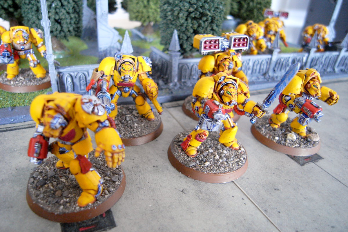 Subject: Have: 15 Painted Imperial Fist (not AOBR) plastic Terminators (+10 metal scouts) [Lots of PICS]