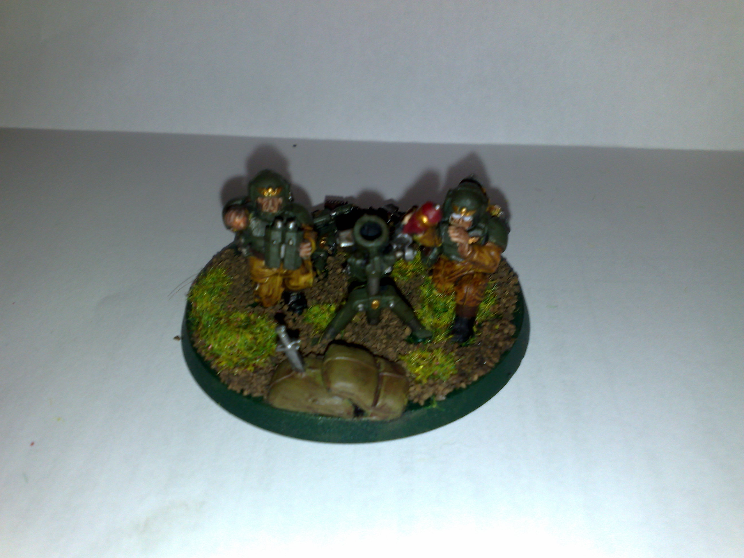 With regards to the "basalisk", i dont think i would move it - perhaps they have some radar which allow shooting at everything within range (all indirectly perhaps?) i dont actually know the rules for the basalisk, I just thought it would fit the army better rather than have a massive piece of artillary attached to the =][=, but rather have a couple of guys who can control the fire from the position they are in with some clever map and compass work and radio skills.