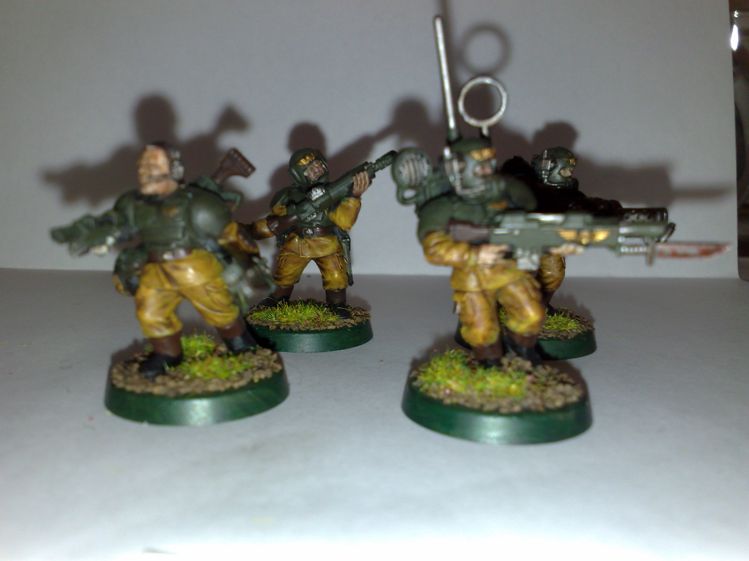 I am currently working on the HQ squad (Interigator + lancer, standard bearer, and vox-er) - when they are done I will try to take some pics if people are interested.