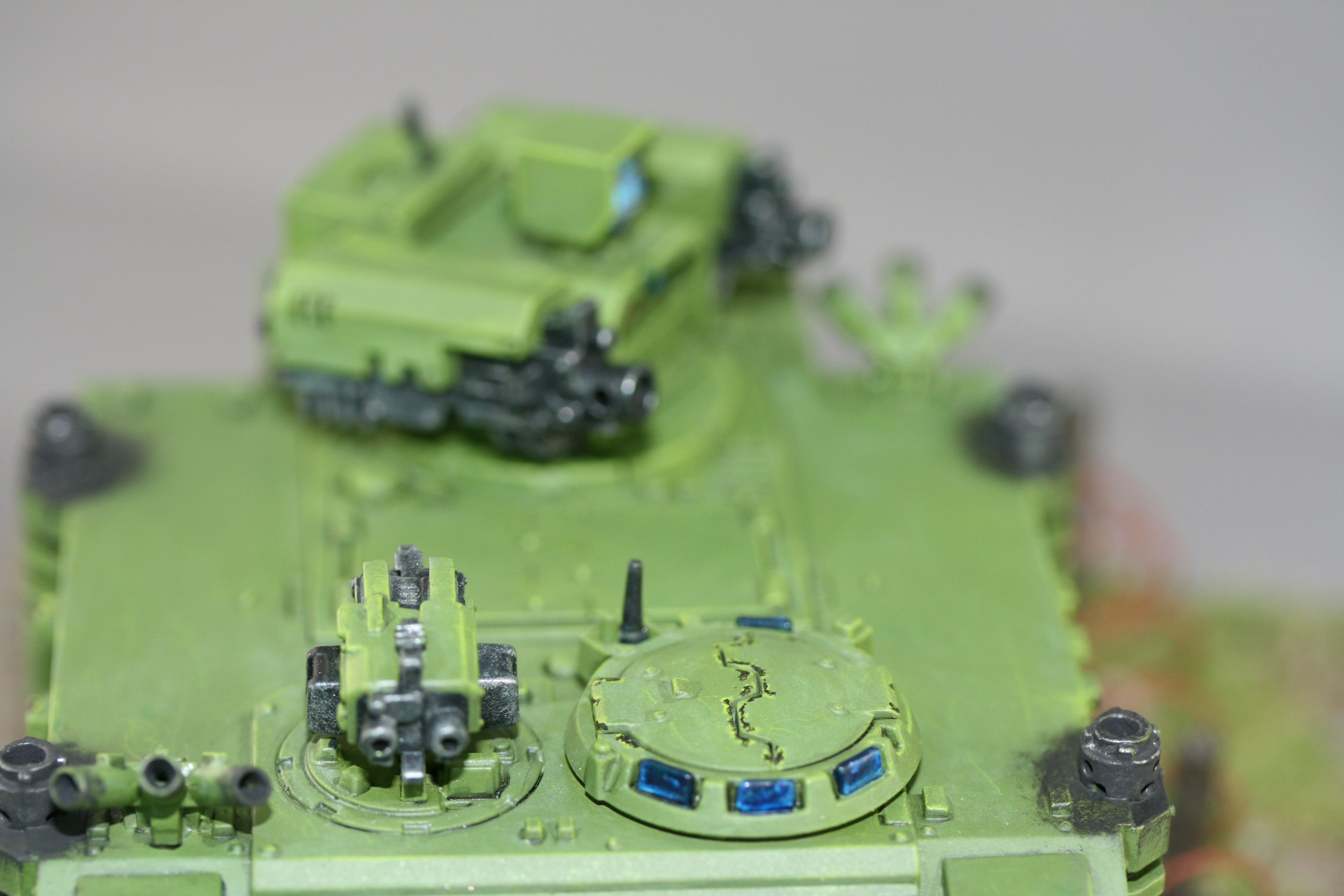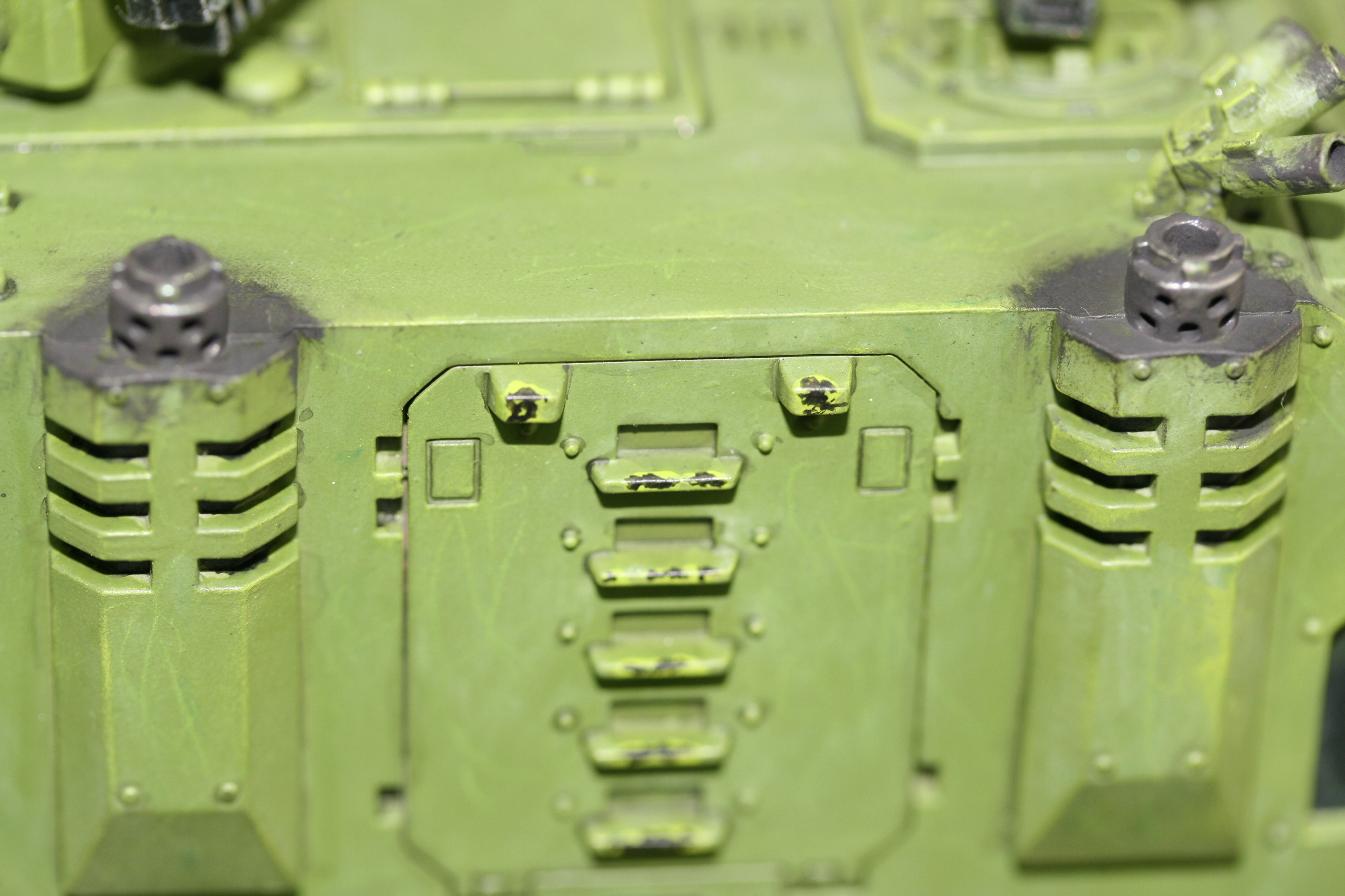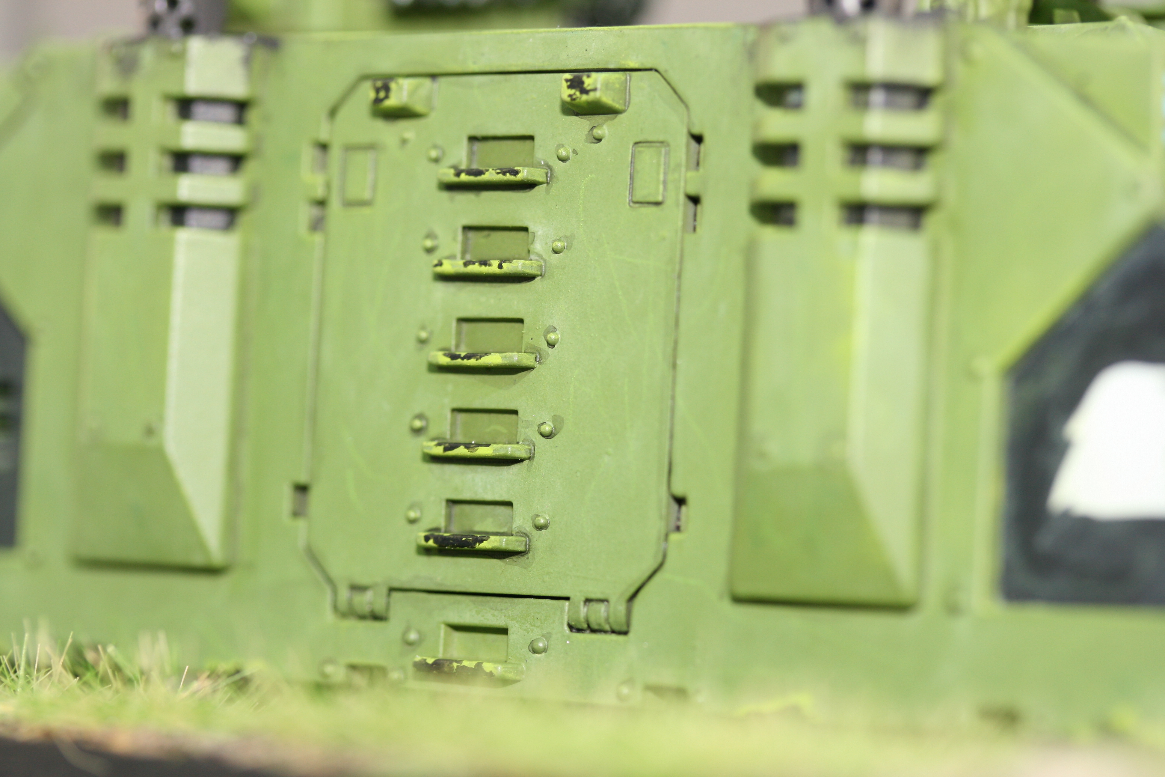 Love the worn off look on the climbing rings on the door! I can actually imagine the lime grean space marine that put it there trying to climb up on the roof and service the turret.