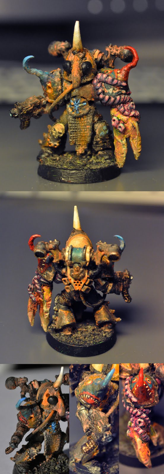 Yggdrasil, your Power fistin' Nurgle worshippin' Aspiring Champion is almost done as well (minus basing and gloss varnish to go over the eyes and tentacle stuff).