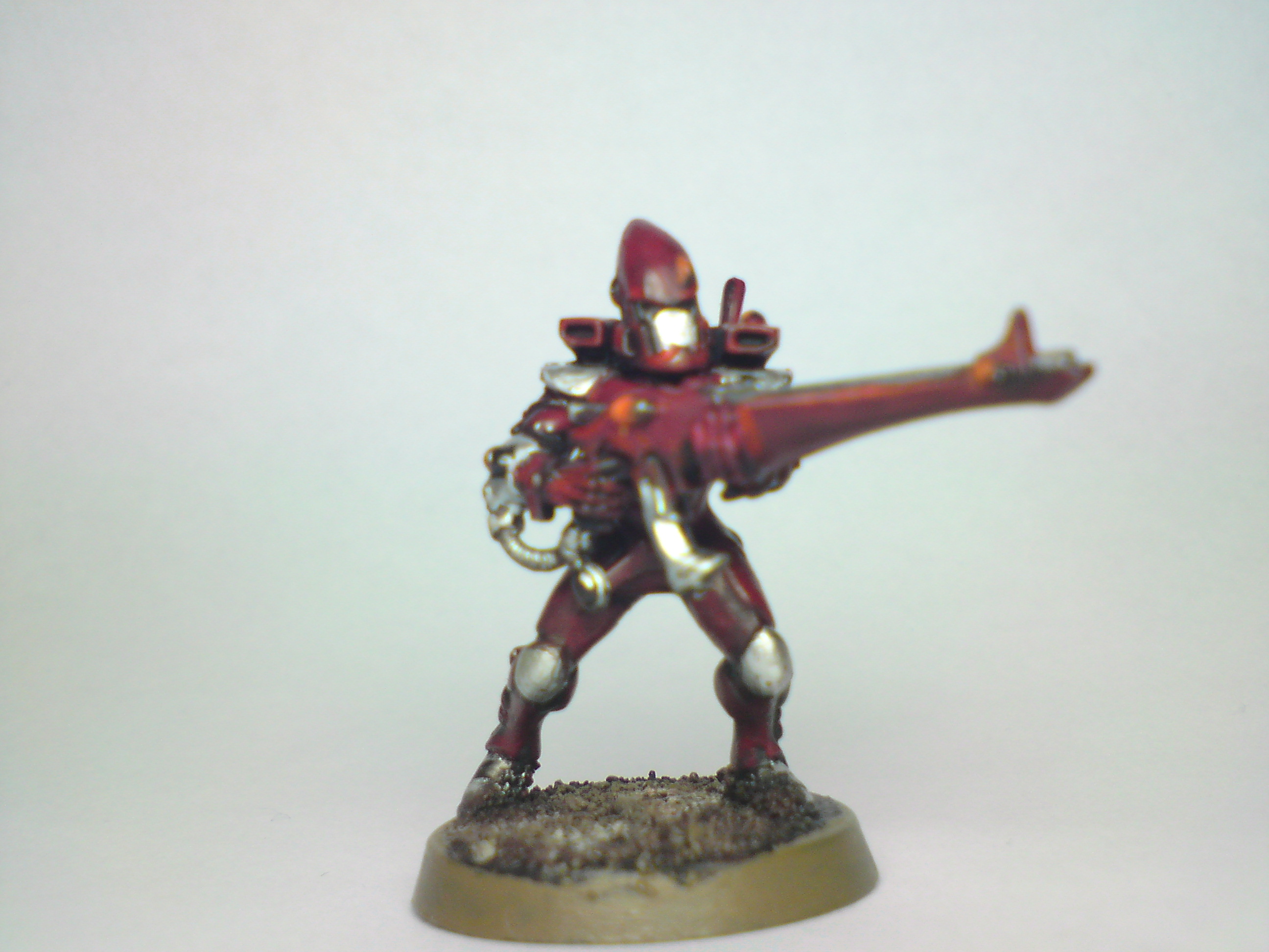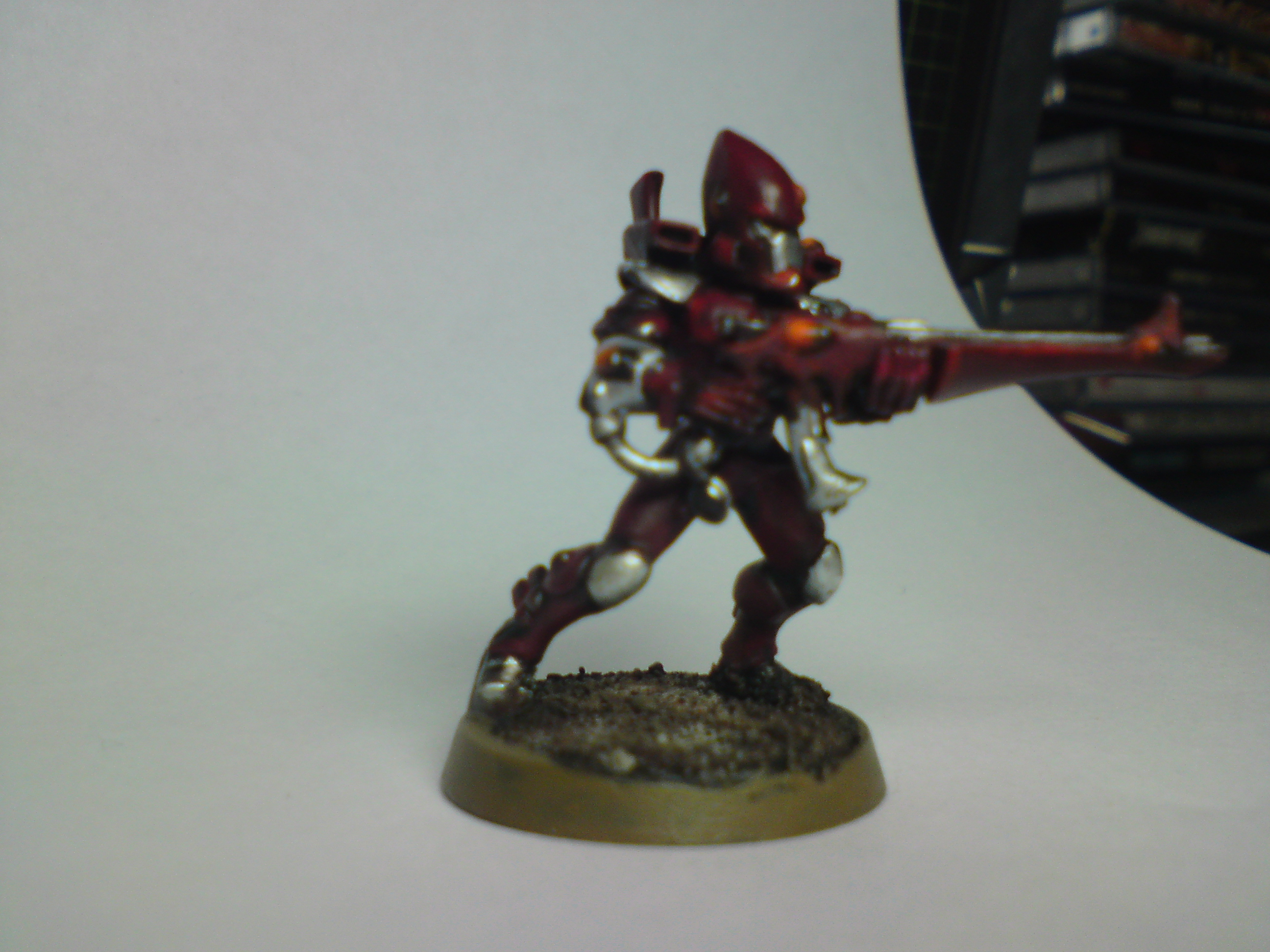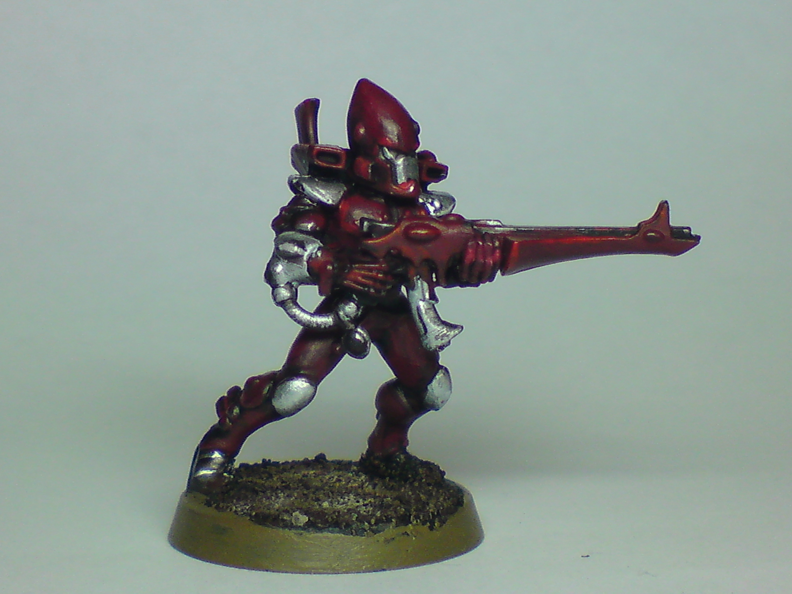 i never do like metal on eldar. i havnt used a single metallic colour in my craftworld iyanden. nice smooth painting though, but i recommend the gems and eyes be ice blue or fiery orange. looks good so far ^^