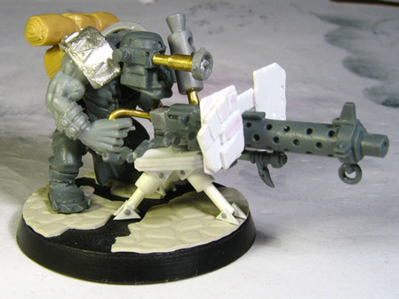 The Big Shoota/Trencha Chain-gun is nearly done. I need to add the shells streaming out, greenstuff the handles some and then it's on to the loader.