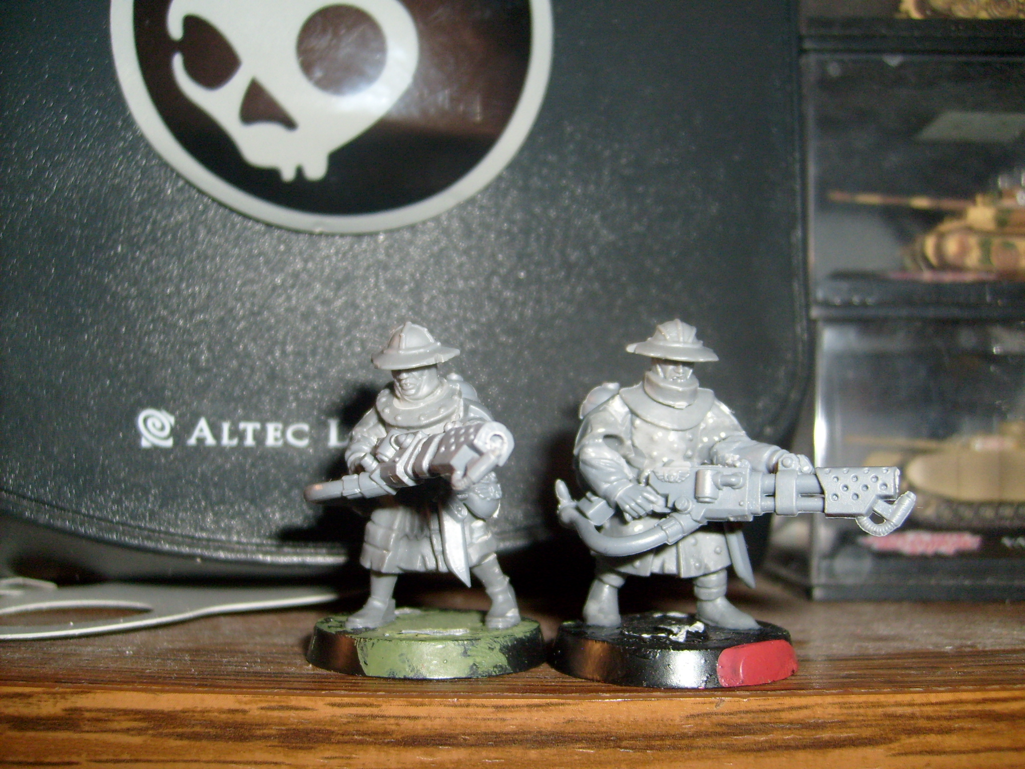 I really hope you can pull those conversions off, alrough somehow I think they'll cost a bomb if you are using proper GW parts. Also, I gotta say that I'm not sure how they are going to work in combination with those pretty-darn-medevil looking gaurd... Perhaps they need more grenades, pipes, ammo and the like?