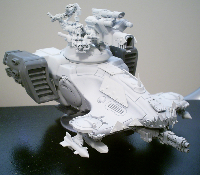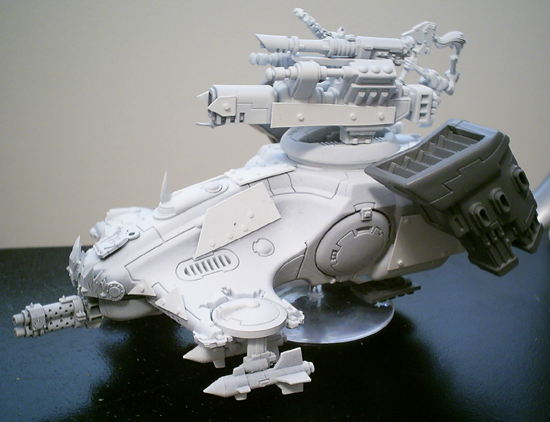Here ya go, obviously very WIP, I need brass rod to use run as axles through the landing gear, and some kind of plane model with alot of engines or rockets to make the engines propa orky, but I think it shows progress.
