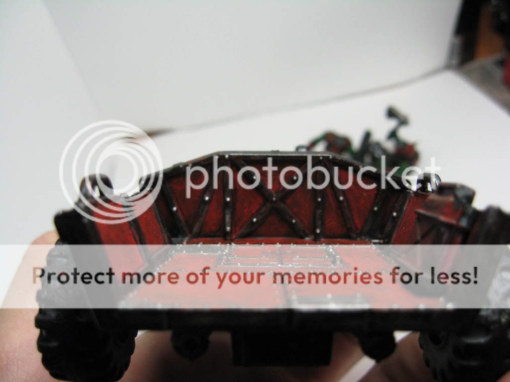 GrimTeef wrote:Don't you DARE retouch the red on the vehicle. The way you've painted it, as was mentioned, really does look like orks did it. It looks dirty and worn and really fits the part.