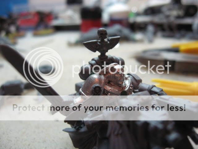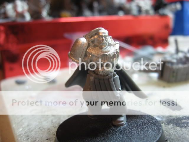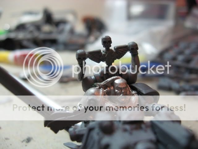 Im just waiting on the 2 extra skulls i need to finish his back standard as well as maybe do a few more tweaks with the model. He has not yet got his right shoulder pad because my friend is wanting to use a proper white scar shoulder pad on him so will add him later on