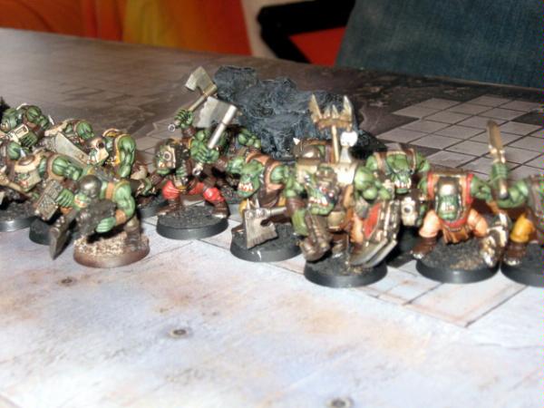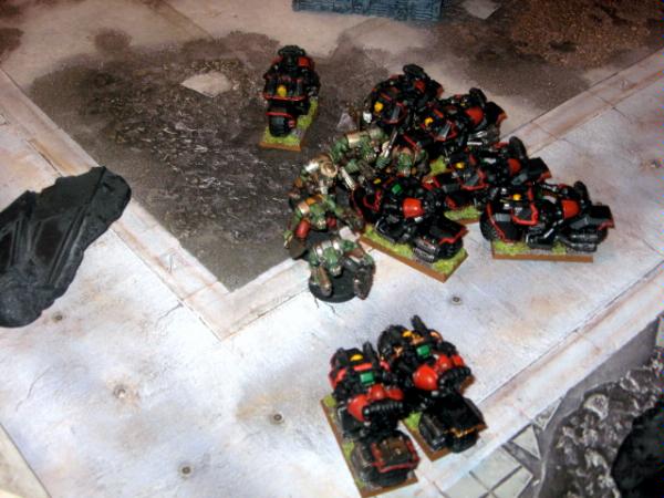 I shifted off to the left and fired a couple of shots into the orks making sure I was outside of 18". It didn't do much damage but it made them mad. The captain fired a couple of shots at the nob unit and took a wound off of one.