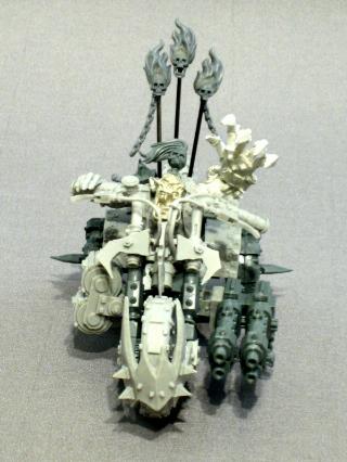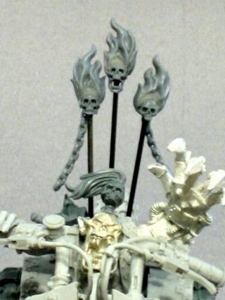 Excellent use of a variety of parts. I especially like the skulls. The center and left side ones are especially good, I can't even see the lines between the greenstuff and plastic!