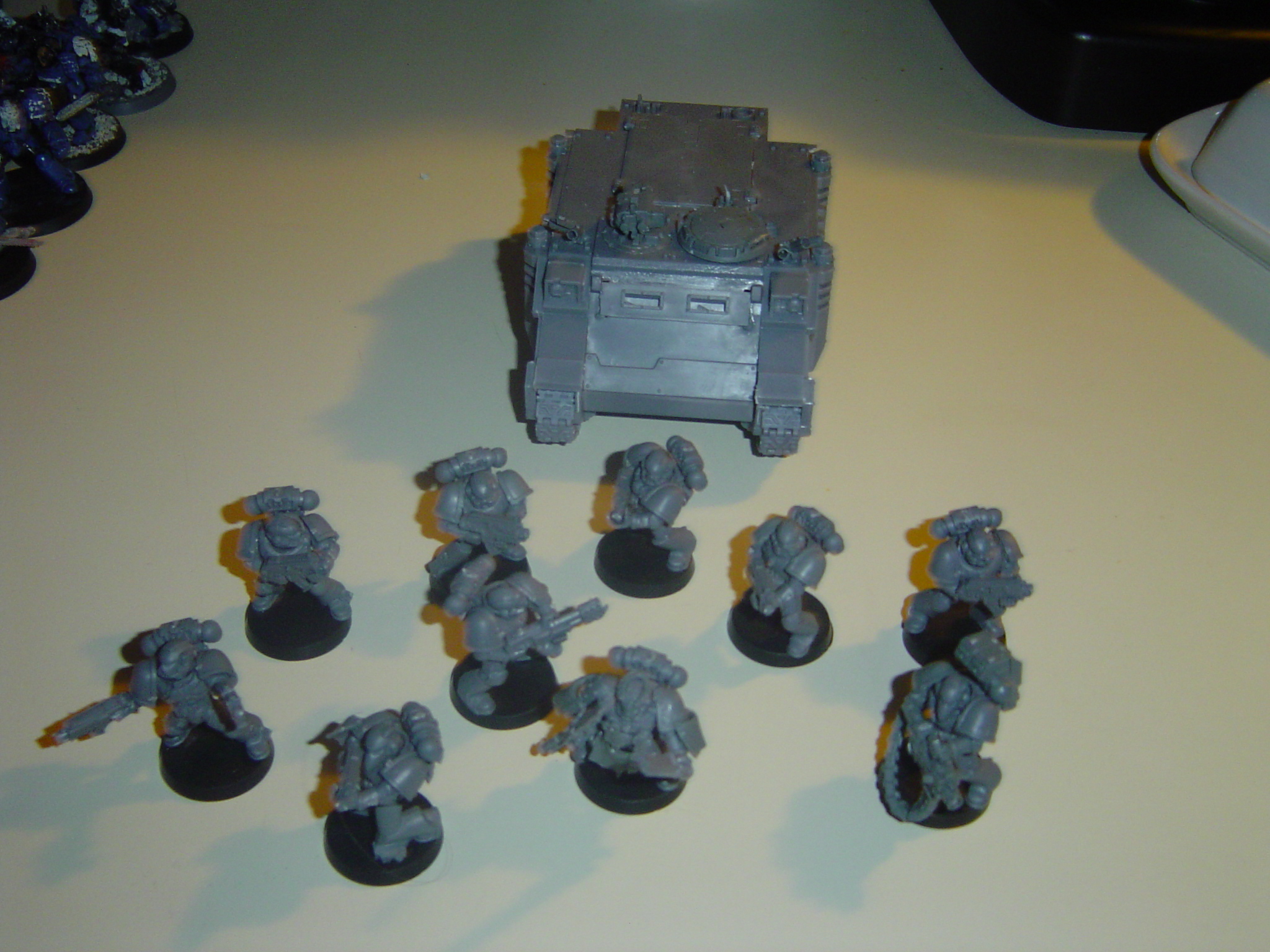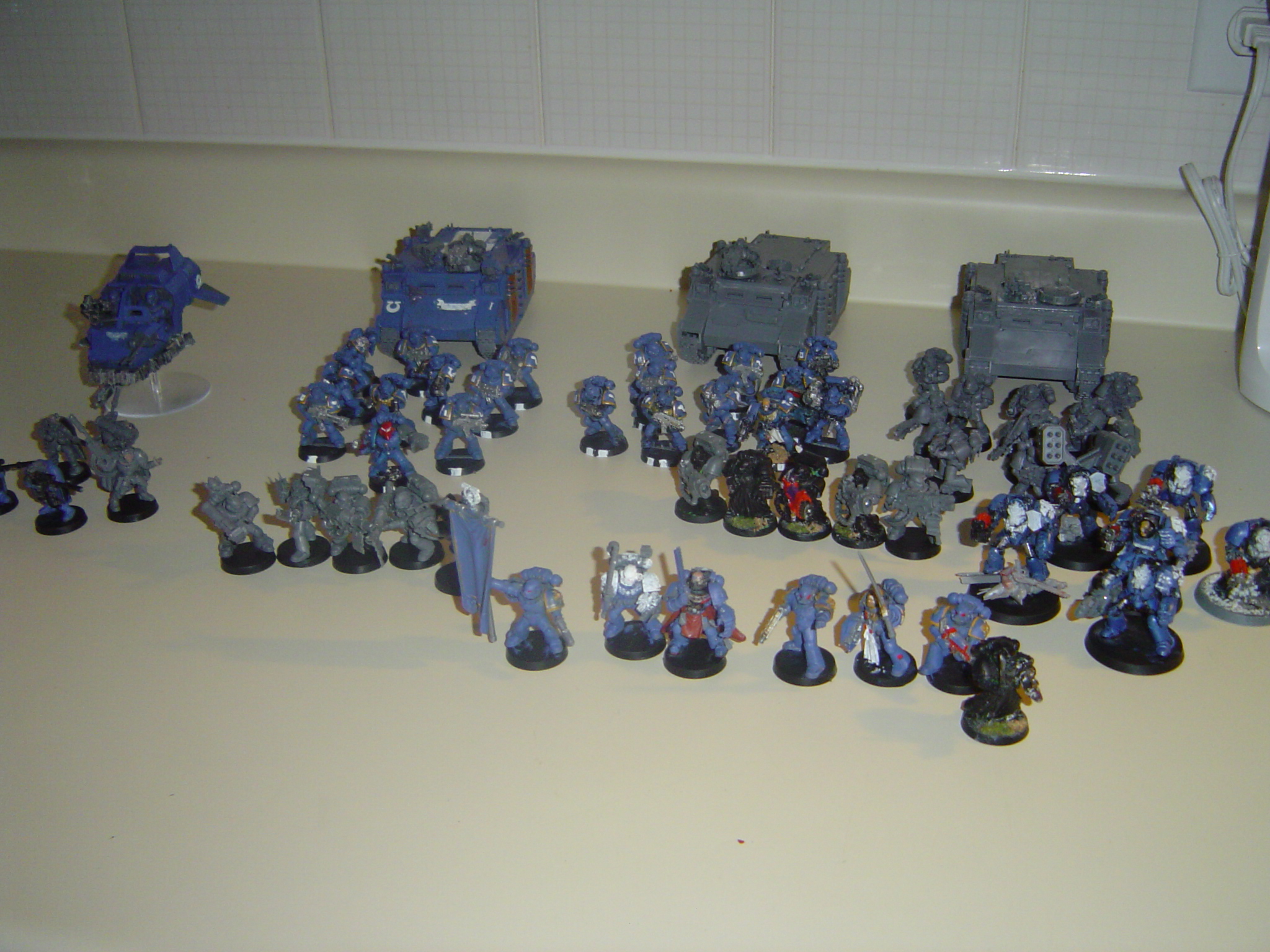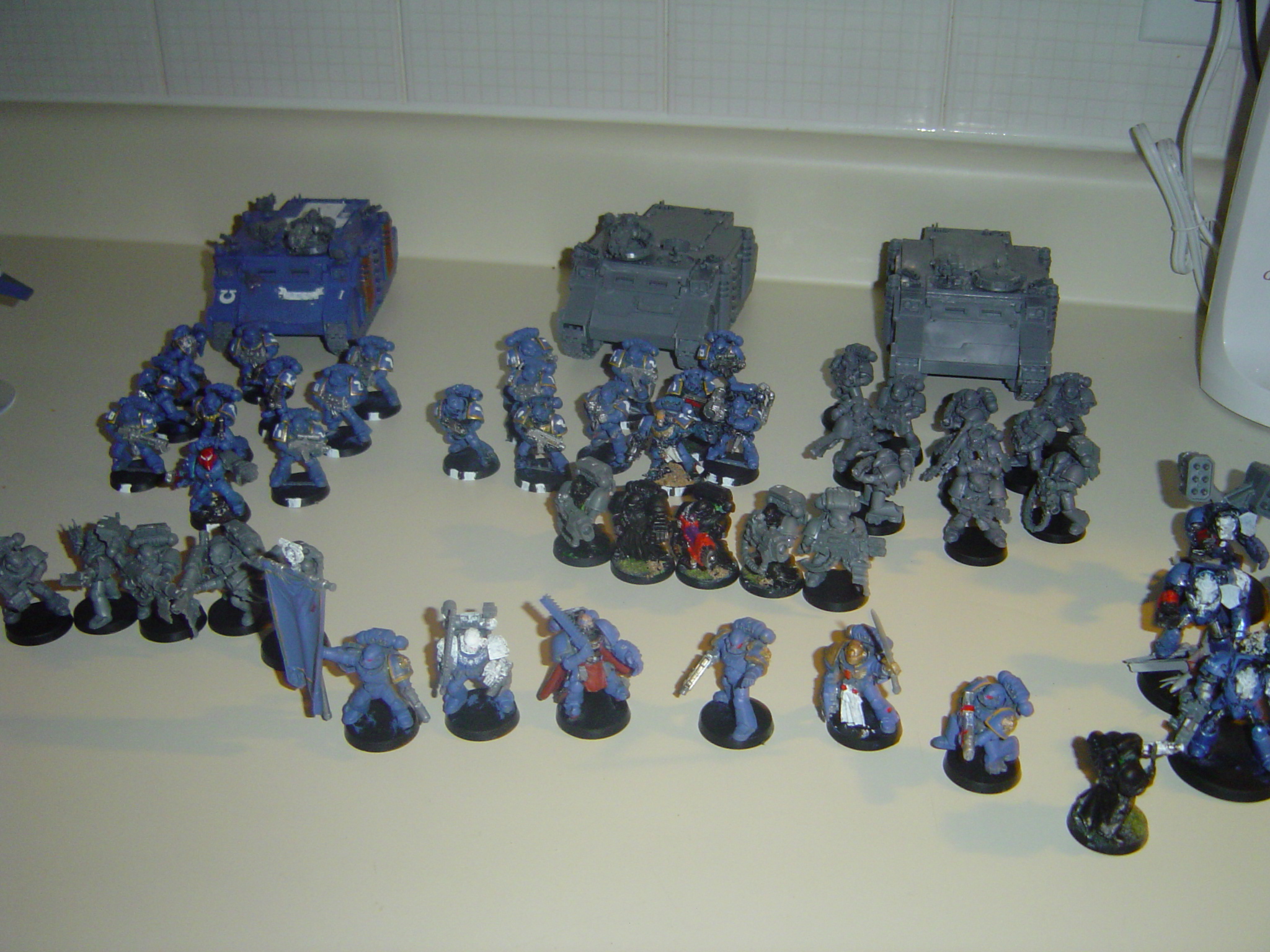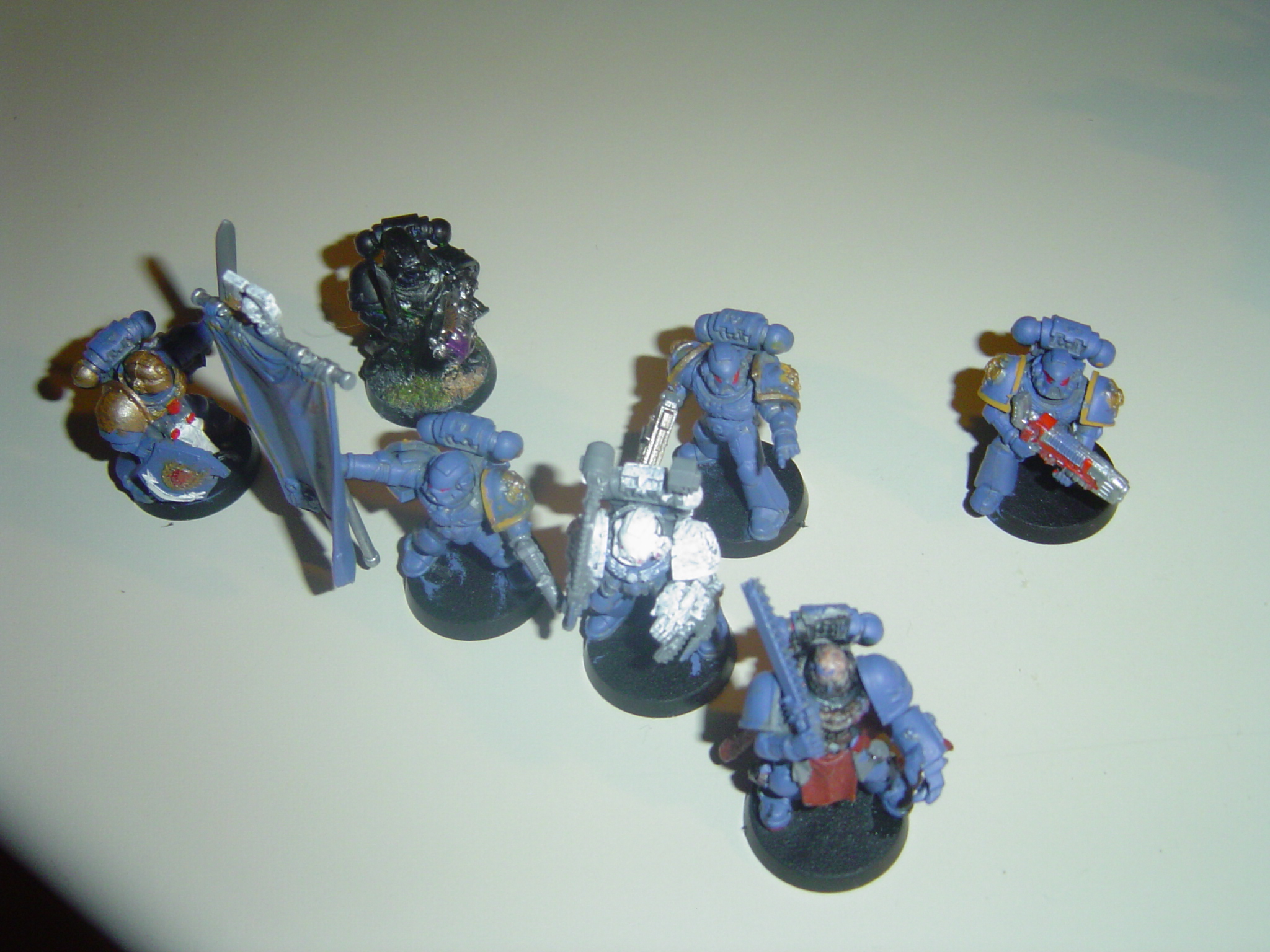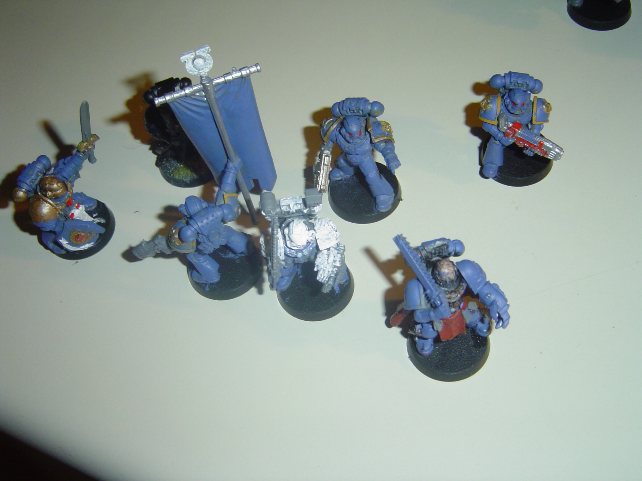 it doesn't look like you spray all your models black. spray 'em black, then carefully paint blue, wash them with black ink and do blue again. this doesn't take long and will make your models look really good. having said that the terminators look well painted and i like the terminator with massive whirlwind missiles and the one converted to a Chaplin. Sargent looks really cool as well.