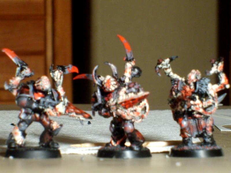 Here are some custom Possessed marines, made with CHaos marine and Tyranid parts. I really love how they turned out. I was going for the 'infested terran' from starcraft look. lol