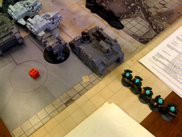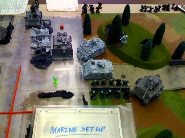 While it seemed like the Marines (as they are the Attacker) should go first, we rolled for it and Warborn won the Dice roll and choose to go first.