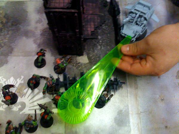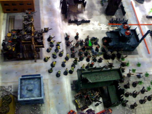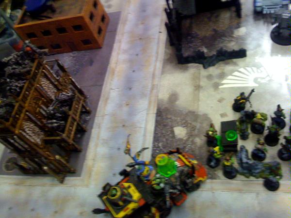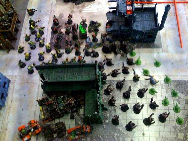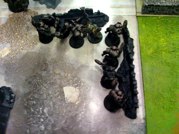 Evil Sunz Slugga Buyz make it to the Scouts, thanks to a WAAAGH from the Wierdboy. I the Pic here you see them after they had consolidated, having killed the scouts to the man. Notice how they stay away form from Agmabob.