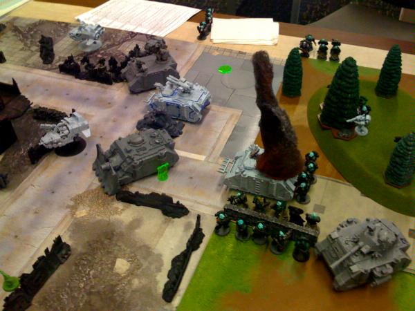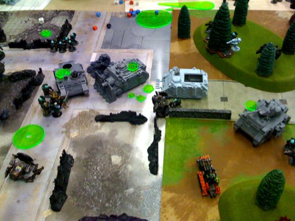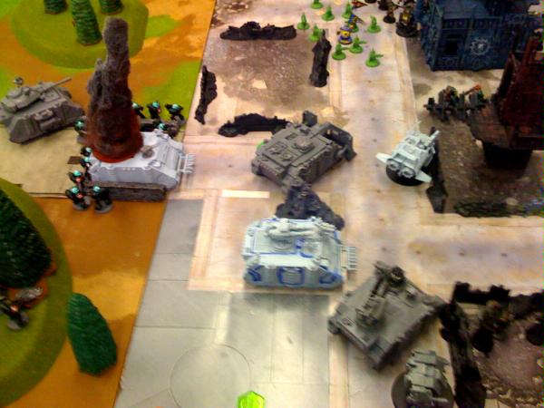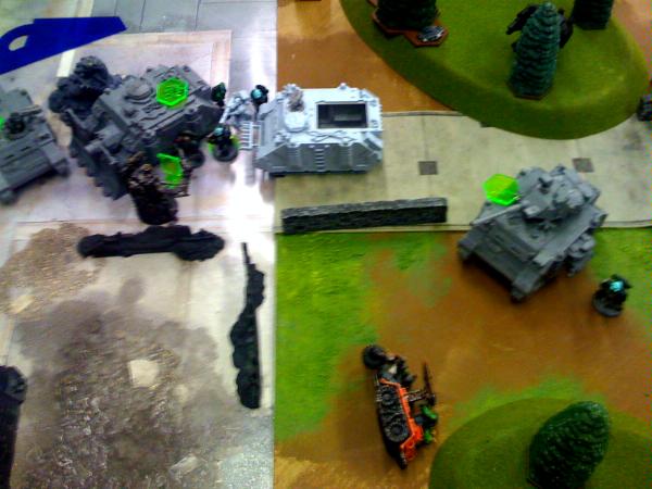 The Last Kan Charges the Vidicator and The Mega Nob in the Trukk zoom up into the middle of the fighting.