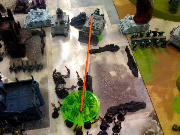 The Predator Destructor Shoots the Trukk out from under the Nobs, but I totally forgot to roll on the Kreen! Table, so they just dismounted in the middle of a Gun line, luckily the Vincator had already fired.