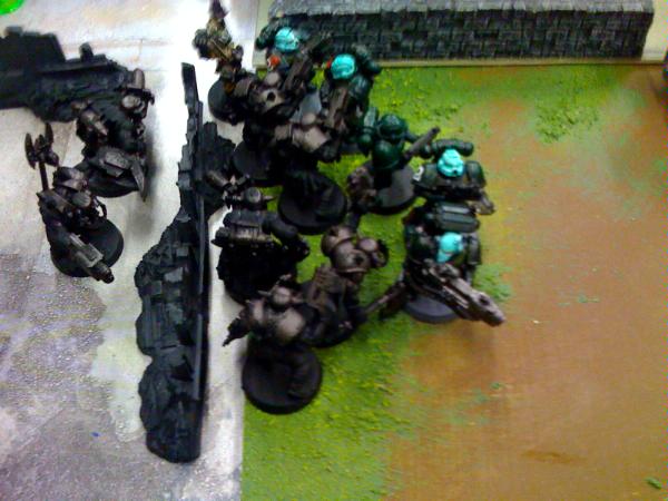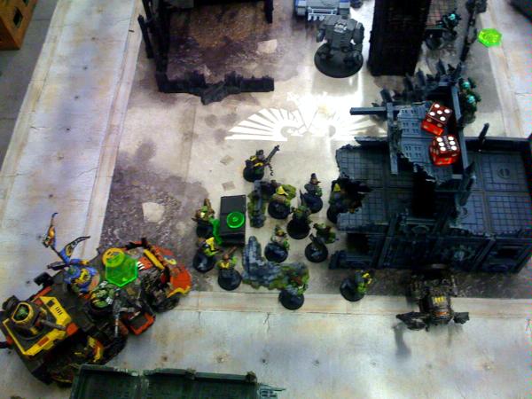 Vulkan and his Combat squad escort take care of an Evil Sunz infestation with out getting around to rolling his bolter shots.