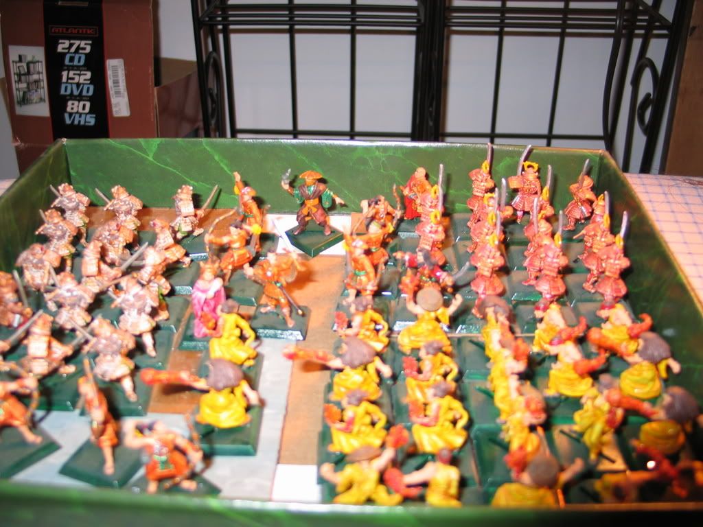 (above)Box Containing Samurai with Swords (Gold Armour, Orange Armour), Fire Mages, Princess, Swordmasters, and some Samurai with Bows.