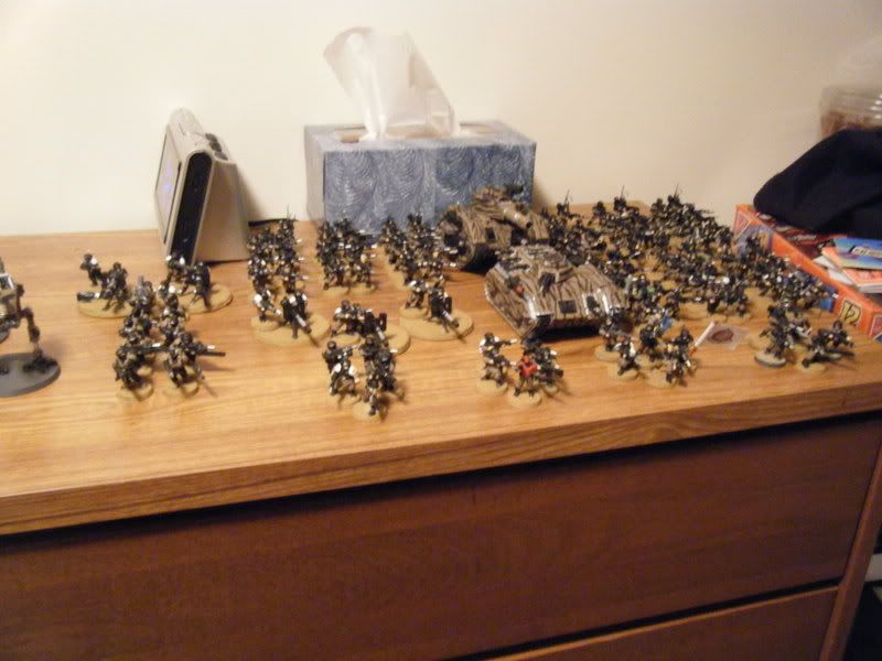 Note that most of the above models are at a cumulative 65% completion status. I still have to touch up most of the models and put varnish on them (they looked a lot better until I started actively wargaming in October. They all need touch ups). I still have to invest in several Chimeras & Leman Russes, along with at least one Demolisher and Valkyrie. I'd also preferrably like to make some more Grenadiers and have at least 40 more Cadians. Jeez, that's a lot of money. :(