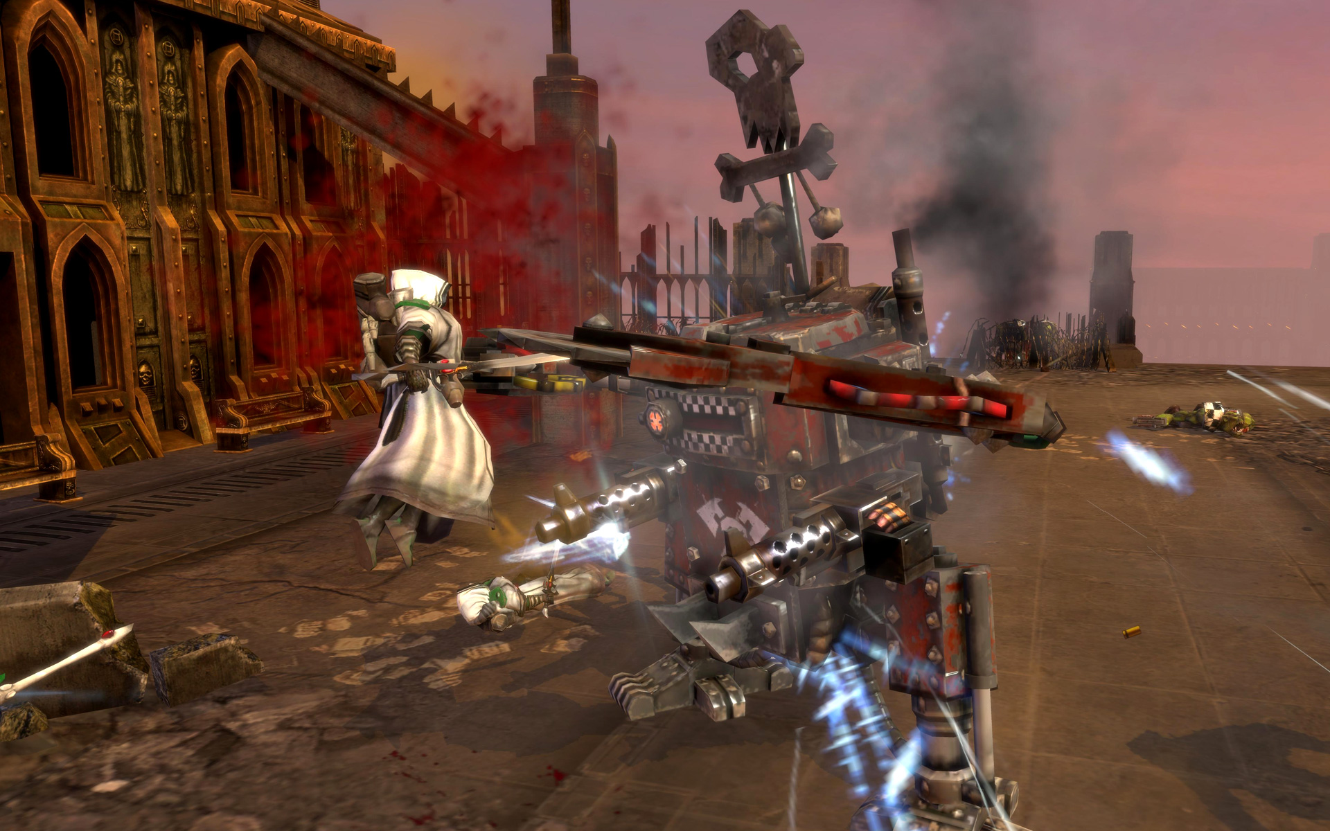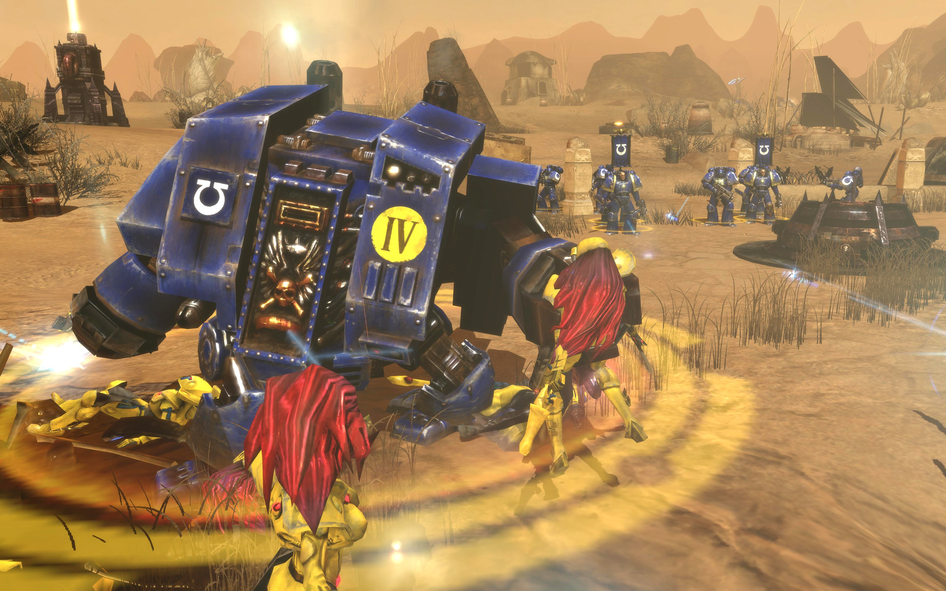 The sight of a Dreadnought killing enemy units inspires nearby troops, temporarily increasing their weapon damage. Comes with the Emperor's Fist ability and can add an assault cannon or receive the Dark Age of Technology upgrade.