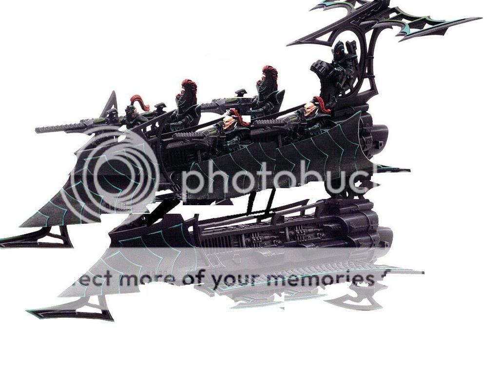 I've always wanted to do a DE army with a big hovercraft in it. I was inspired by the old "He-man" movie, where Skeletor enters earth riding this big floating barge with huge throne on it. It reminds me of the DE on a raid.