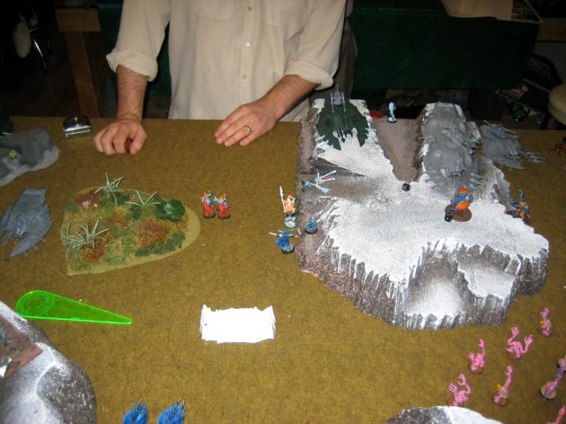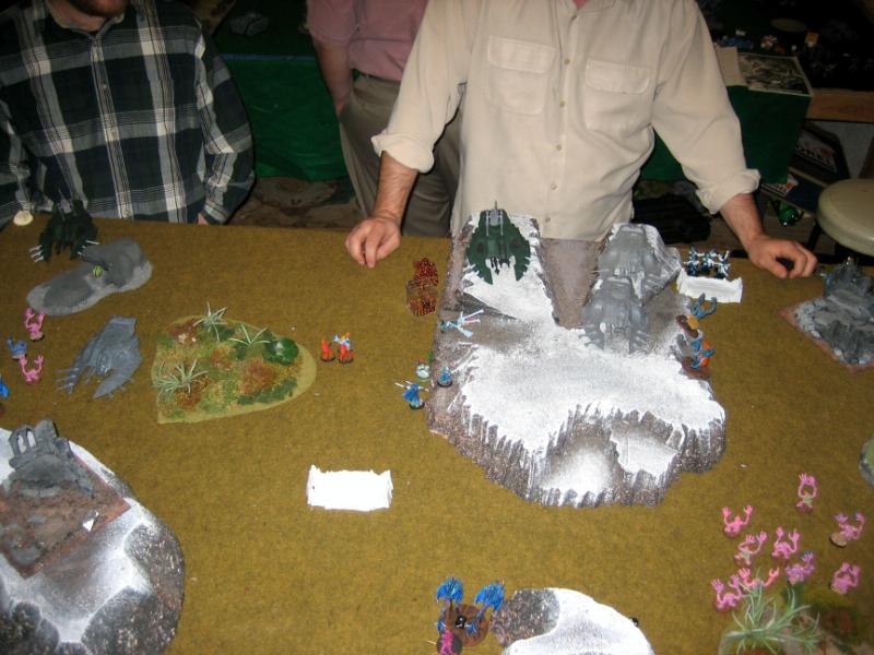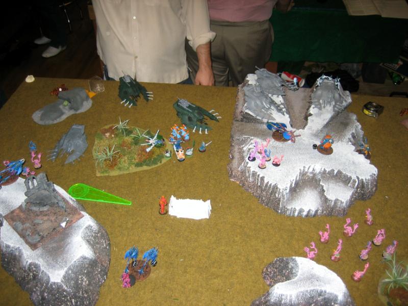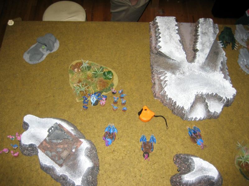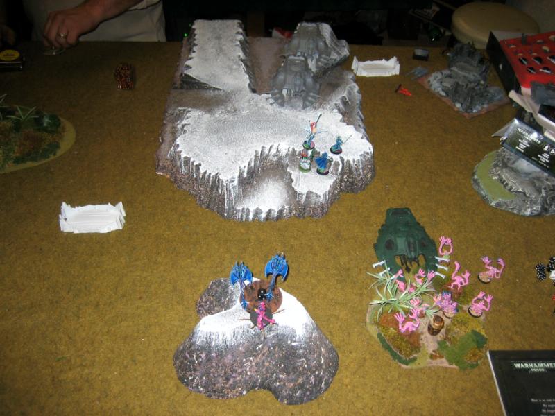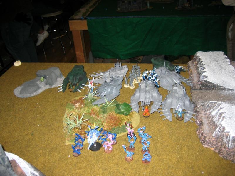I'm giving him a bit of a break, he actually just sold off all his old eldar and is replacing the entire army because he wants to re-paint it. You just never saw what has been painted, because I missed turn 2 . The scorpions were painted and the banshee's were painted, and most of the warlocks, and 2 of the dire avenger squads.