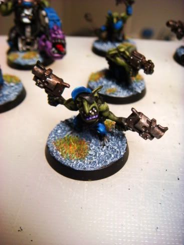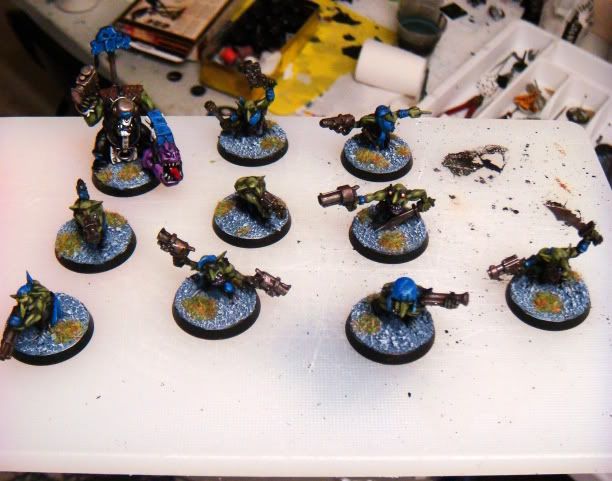 Those are some really sharp models, and I like how you've done up your blue. The bright blue is a REALLY nice contrast against the earthy Ork skin.
