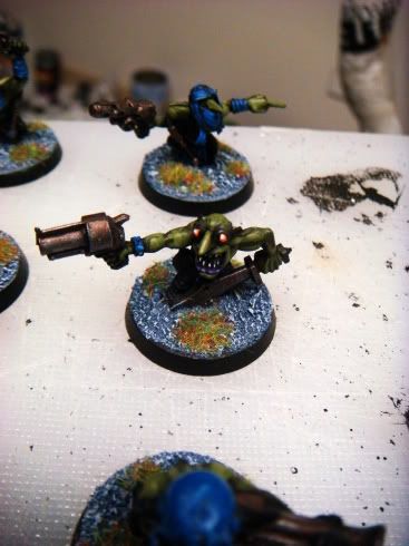 Very nice. I especially like the Burna with the mask and the Runtherd. On some of the weapons, I think there is a bit too much blue, but it's a minor issue and can appreciate having to paint 100 or so models at the same standard.