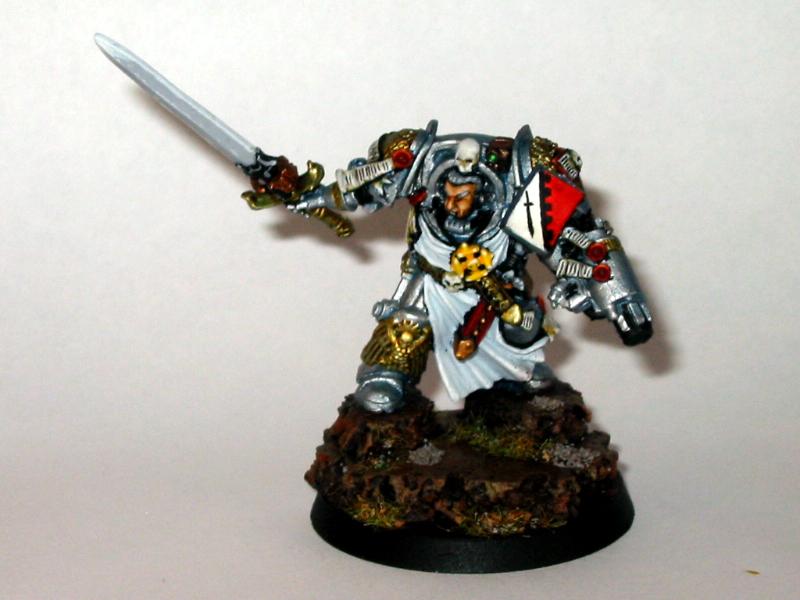 The model is quite simply a SM Terminator Captain with right and left arms of a simple Grey Knight terminator. The base is just cork.