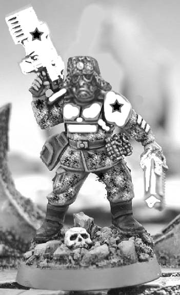 I think fate stepped in and decided for me. At my local Game/Hobby shop, where they sell stuff for people, I found a bag of 100 Pig Iron Russian/Soviet style heads....So I'll do a Valhallan (or Vostroyan) style army. White body armour, white encased weapons, and urban camo on clothes. Land vehicles will be primed black, tiger striped with grey spay paint, and then spattered with black, grey, and white dot camo. Valkyries will be same on top, but underneath sky blue with white "cloud" look.....Here is a photo shopped quick idea....I will also chop off tip of lasguns and add shotgun on chin of lasguns....Cooler look to me.....Red stars and russian slogans (from decal sheets I have from WW2 models) will be appiled too....I'll mix in Vostroyans (heavy weapons teams & HQ), and use current cadfians, new upcoming cadians, new upcoming stormtroopers too with the head swap!