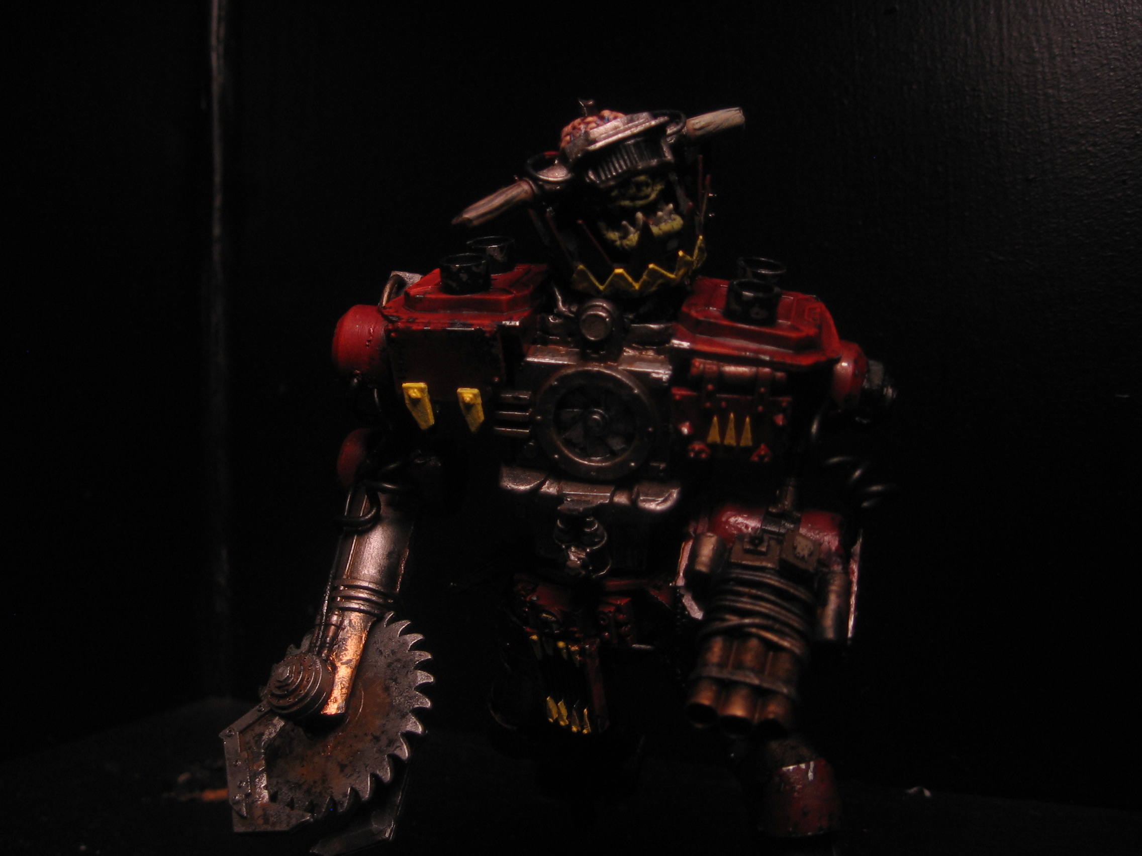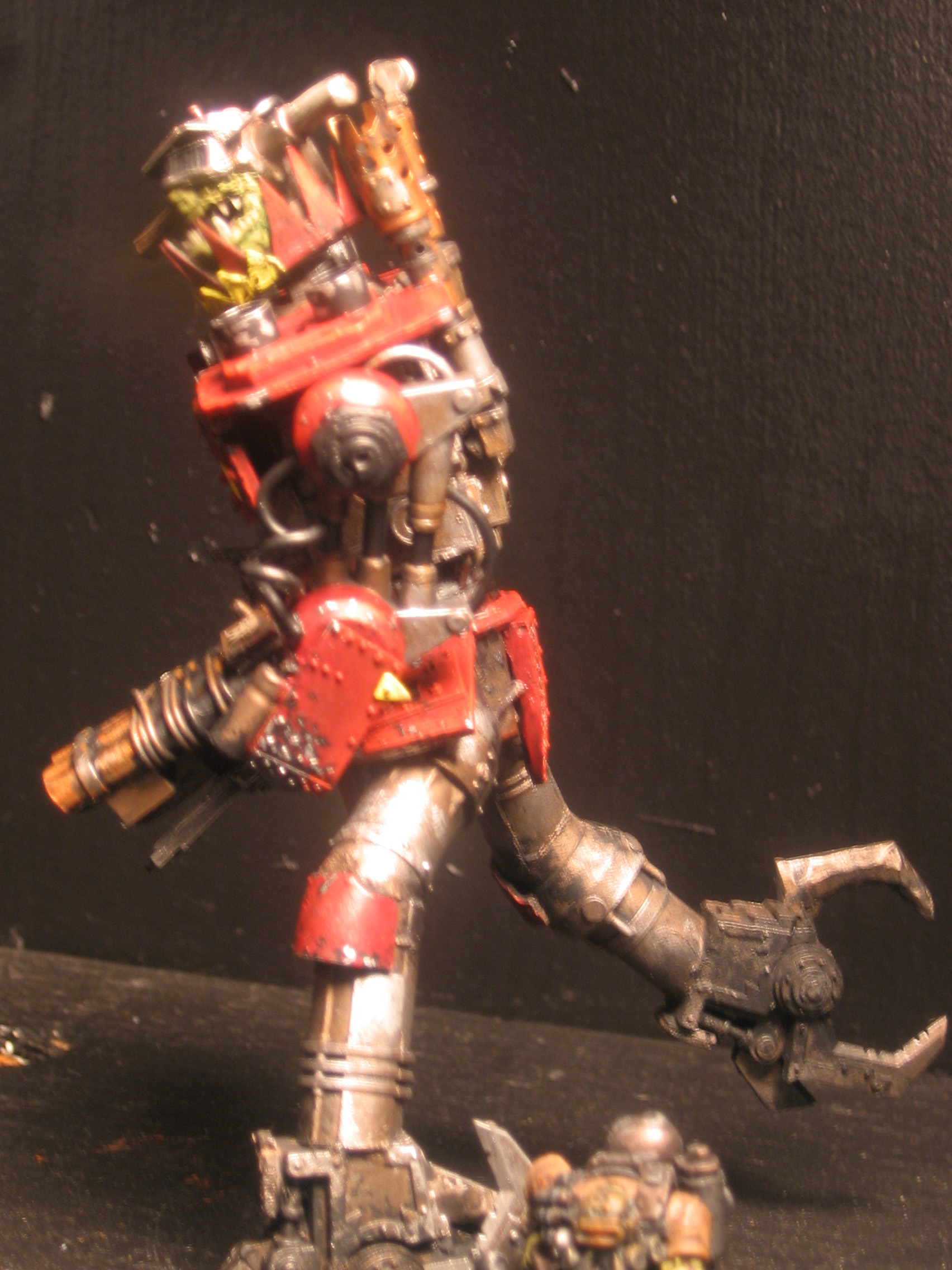 This dude is like the oldest and most powerful..(so he thinks)..ork in the entire universe. The only thing actually alive is his head, kept goin' by mad docs, and mekboys, and the thirst of blood. He wanted to make sure that he'd always be the biggest, baddest warlord of all time. The grease and limbs of the poor test grots and boyz flew for years. Blitzzrippa was obsessed, so obsessed he was almost overtaken, but by then it was too late.