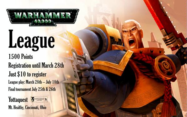 * Registration is $10, at Yottaquest, and at that time the players must declare which Codex they will be using. Registration will continue until March 28th. Registration money will be used for prize support.