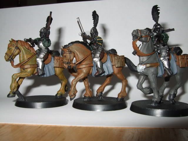 First up are the pistoliers. Basecoating is 3/4 done now and its nice to be able to churn out a unit in a fairly short space of time. Bases need swapping to rectangular ones (which is a shame cos I like big round bases, but c'est la vie...). But overall a nice little unit to get me started.