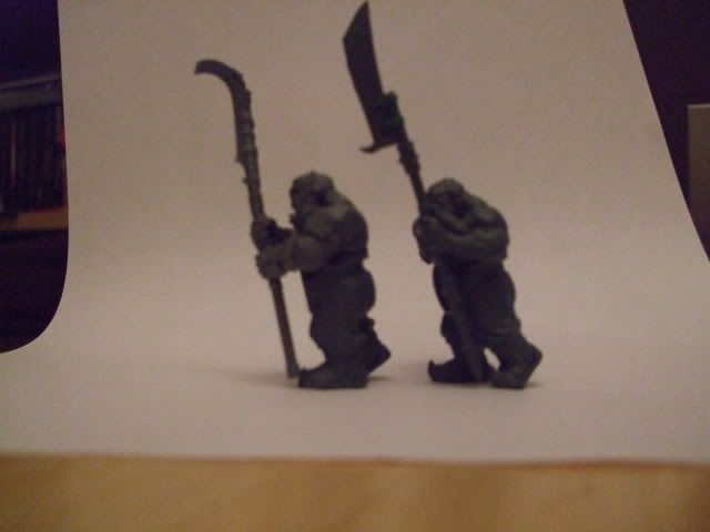 These guys are the first in a unit of ogre mercenaries armed with some seriously meaty halberds. Main aim with these boys was to see if the halberd conversions would work and look suitably impressive, which I'm happy to say appears to be the case, so I haven't done anything else in terms of conversion work. Future members of their regiment will receive some more Imperial touches -floppy hats, jerkins, feathers etc. to help tie them into the army as a whole. They'll also feature Stirland green and yellow, though I haven't decided how much yet. In game terms, they're ironguts.
