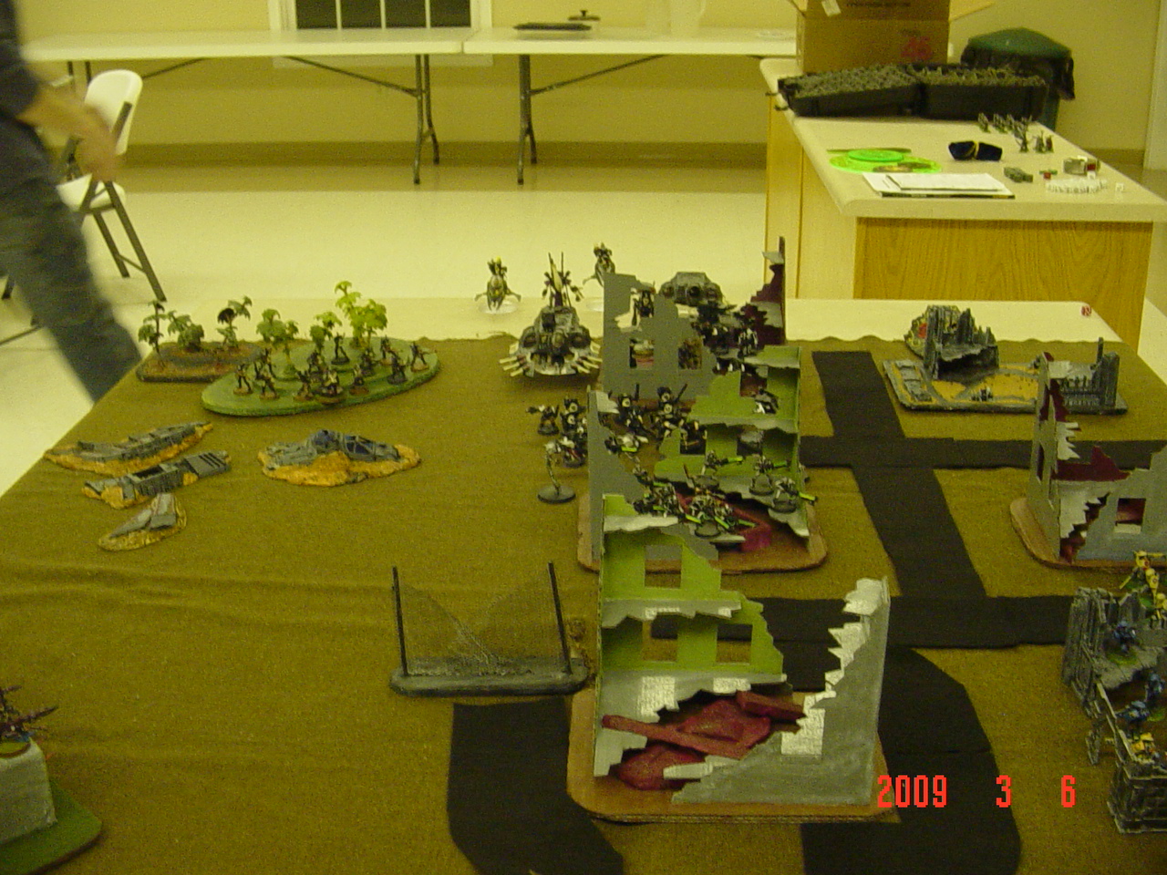 The Battle ended in a draw. Each side controlled 2 objectives in their own zone. The central objective was buried in the bodies of the dead warriors who had tried to claim it. Unfortunately, my camera batteries died. The carnage over the one objective was enormous. Thousands of points were lost on each side trying to claim that objective. It was truly apocalyptic.