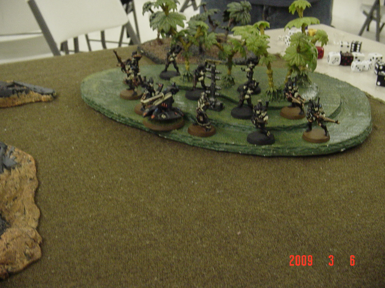 When I saw the setup shots my first reaction was It looked like it was going to be a little one sided, both imperial guard and tau being gun line armies, with a hugh area of open ground infront of them! I was expecting the blood bath! but the eldar SM guys seemed to cope with it!