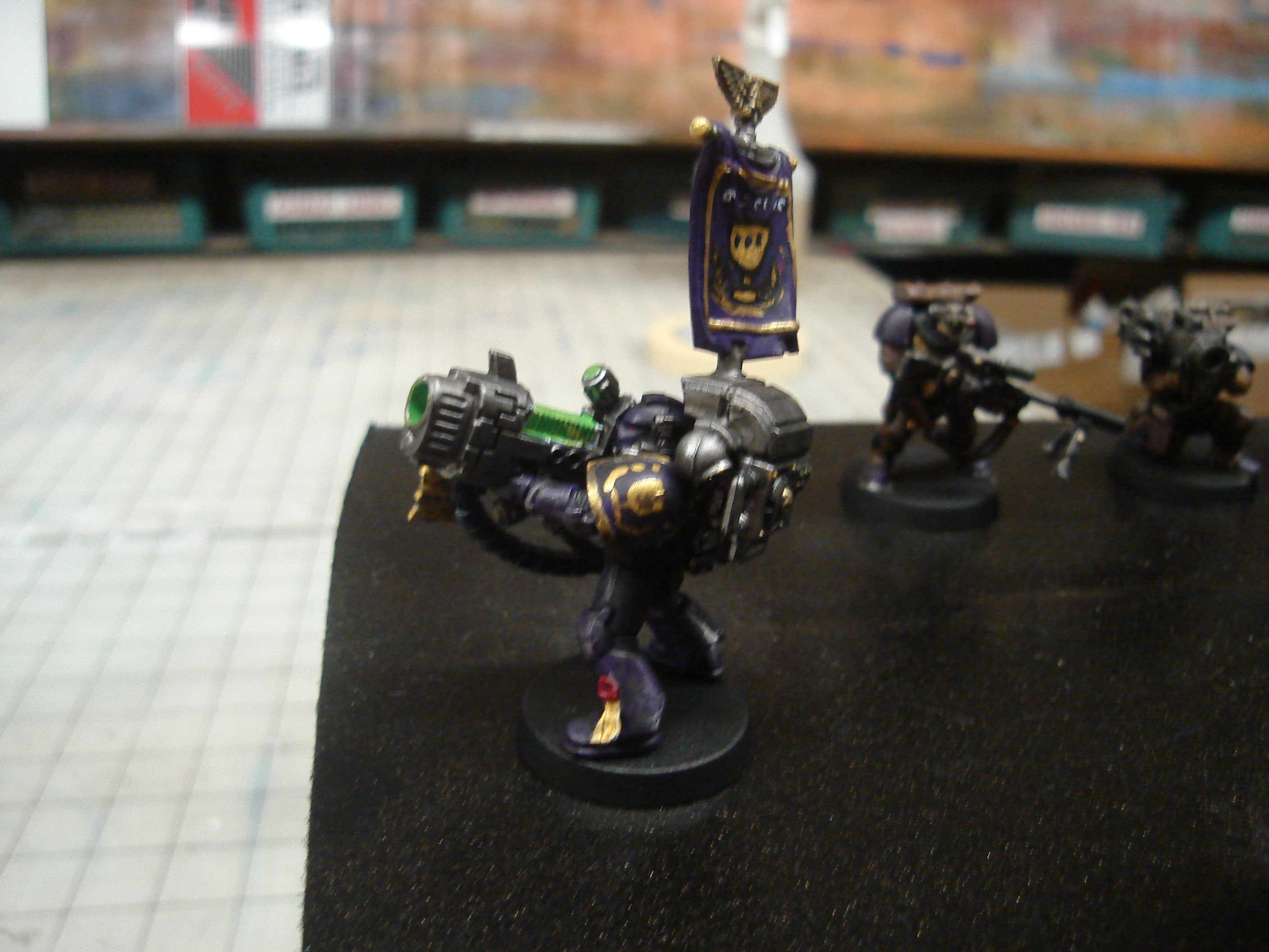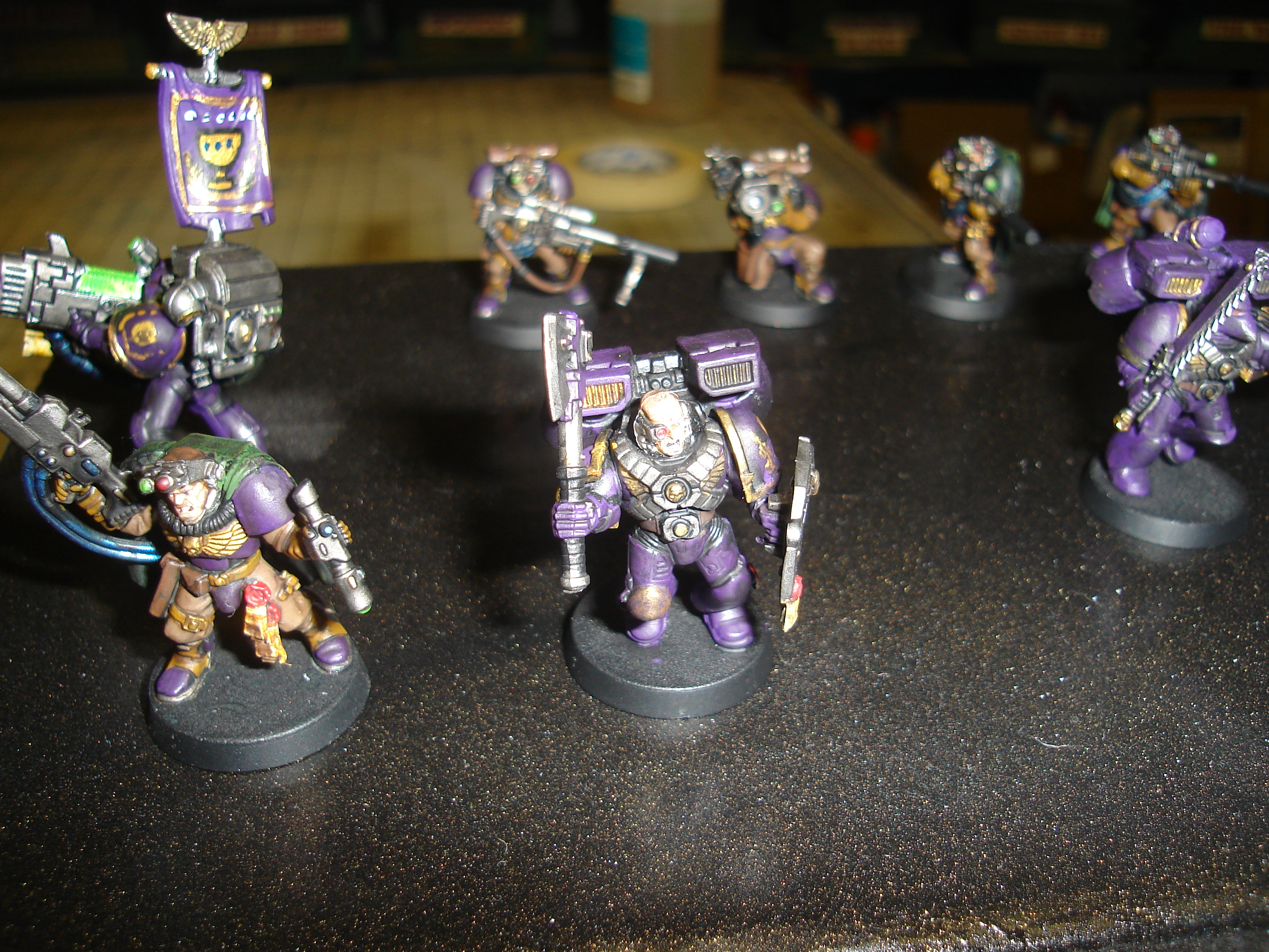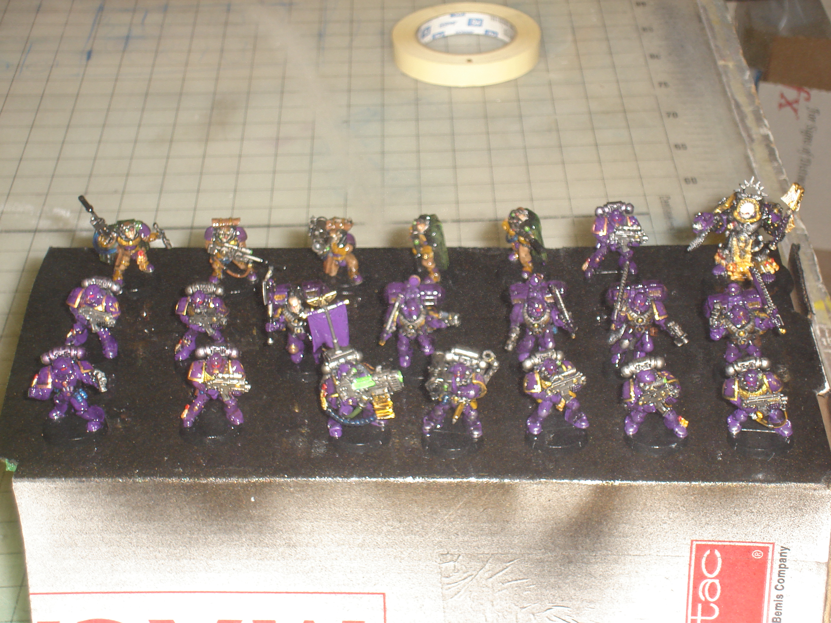 I am in the process of painting and have a ways to go... I will post pictures as I get them. Check out my other topics for some pics of the dreads and termie chaplain. I ahve a finished Tact squad and assault squad I'll post pics of soon. Pics have been posted.