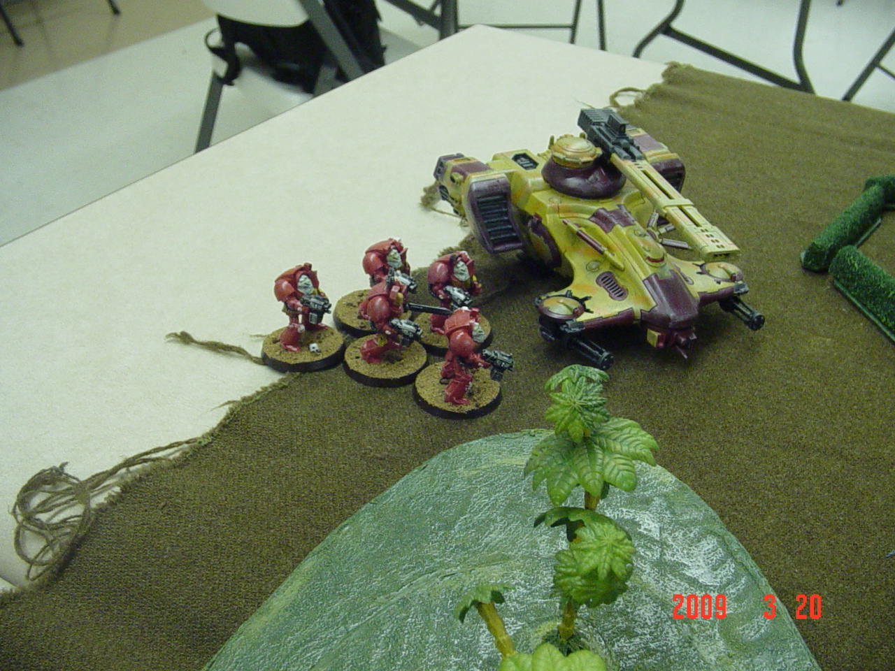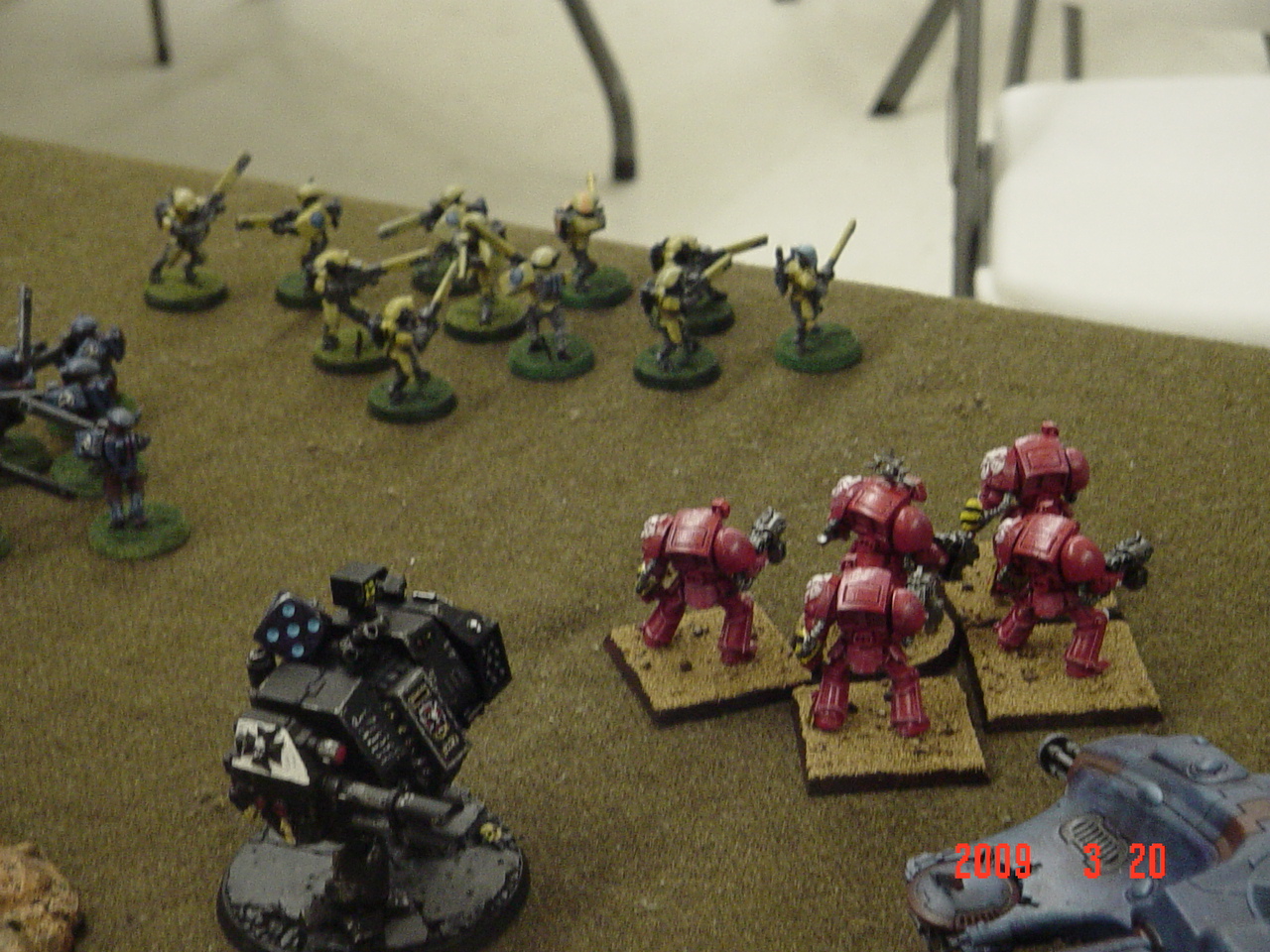 A unit of Fire Warriors surveys sets up a firing point on what has become the left flank of the battle line.
