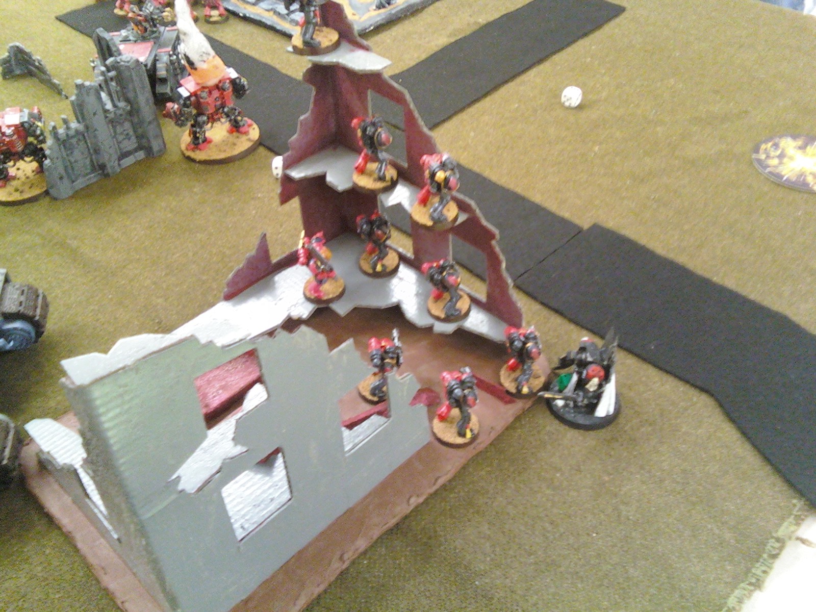 The Vortex Grenade moves, sucking an ruined building into the warp leaving this tactical squad out in the open.