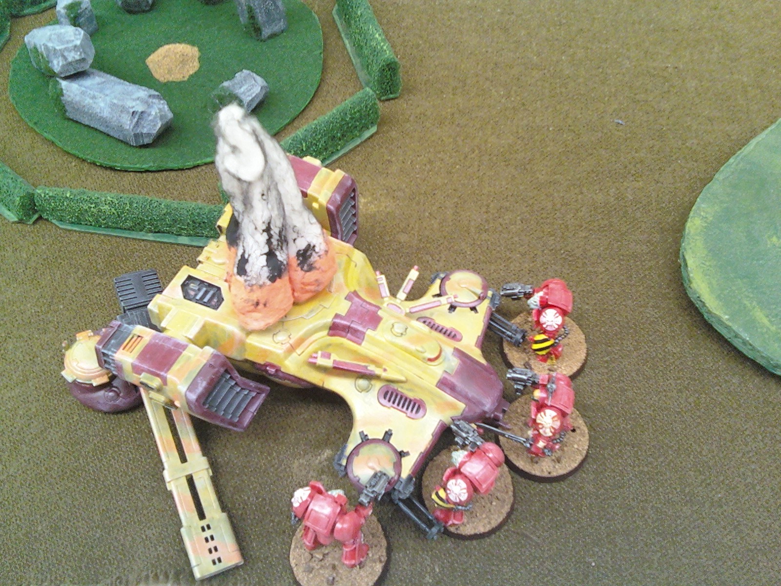 There is an empty spot where that Crusader Squad used to be!! The Baneblade Cannon strikes on the first turn.